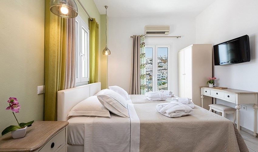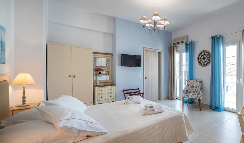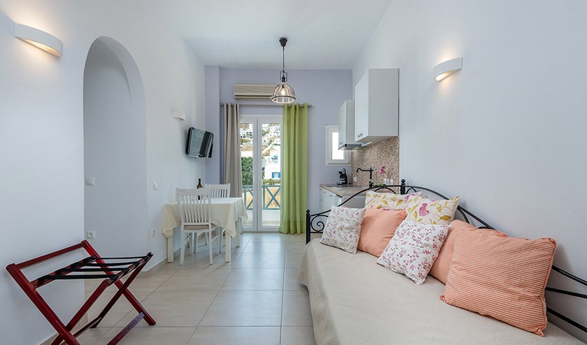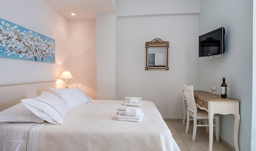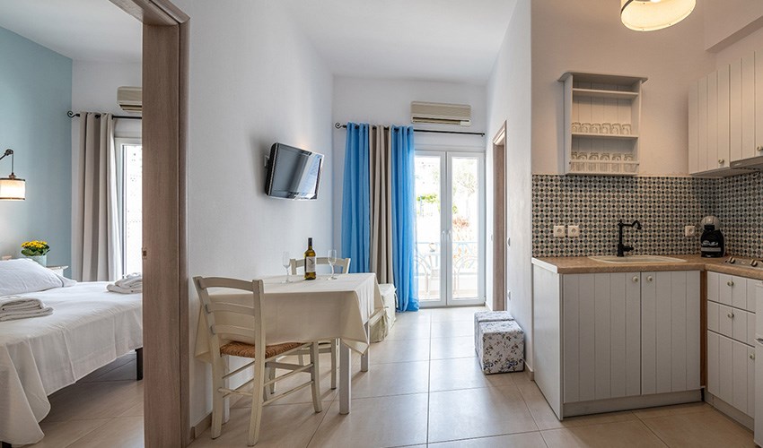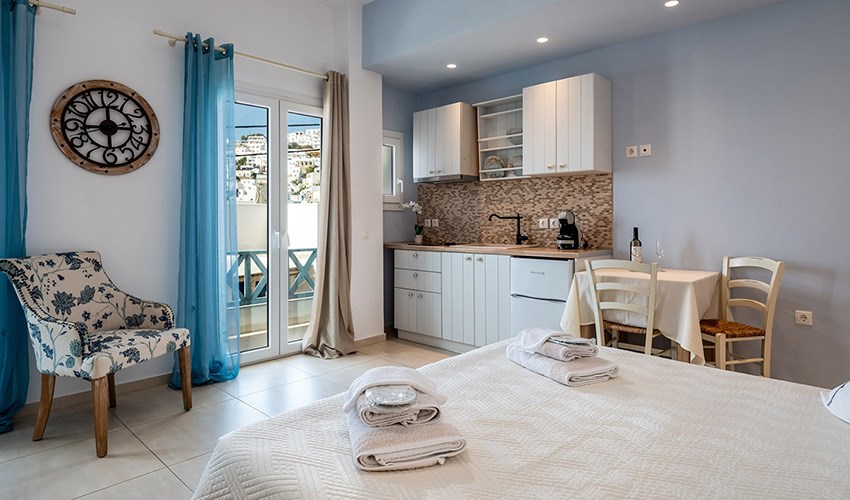 Studia Niriides Luxury určena pouze pro dospělé hosty se nacházejí v malebném letovisku Pera Gialos na ostrově Astypalea, jen několik kroků od oblázkovo-písečné pláže a malého přístavu. Nabízejí klidné prostředí s nádherným výhledem na Egejské moře a hrad, který se tyčí nad městem Chora. Elegantně zařízené pokoje v tradičním kykladském stylu kombinují moderní komfort s prvky místní architektury. Každý pokoj má vlastní balkon nebo terasu, kuchyňský kout, klimatizaci a Wi-Fi připojení. Hosté oceňují především čistotu, vstřícnost majitelů a osobní přístup. V docházkové vzdálenosti se nachází několik útulných taveren, kaváren a obchodů. Díky své poloze jsou Niriides Luxury ideální volbou pro ty, kteří hledají klidné ubytování blízko centra dění. Ostrov Astypalea je navíc známý svou autentickou atmosférou, romantickými výhledy a nedotčenou přírodou. Ubytování doporučujeme párům, které si chtějí vychutnat kouzlo řeckého ostrova mimo hlavní turistická střediska.
