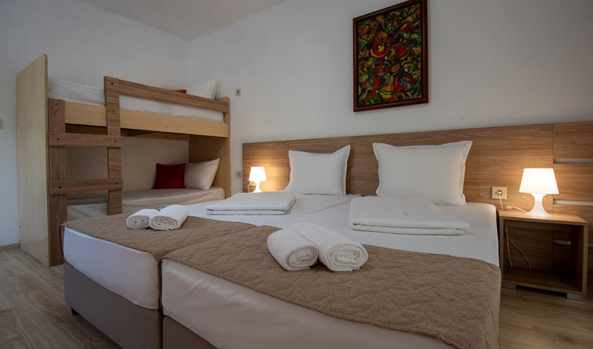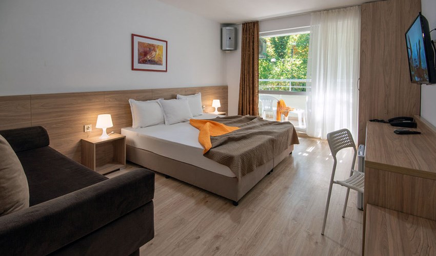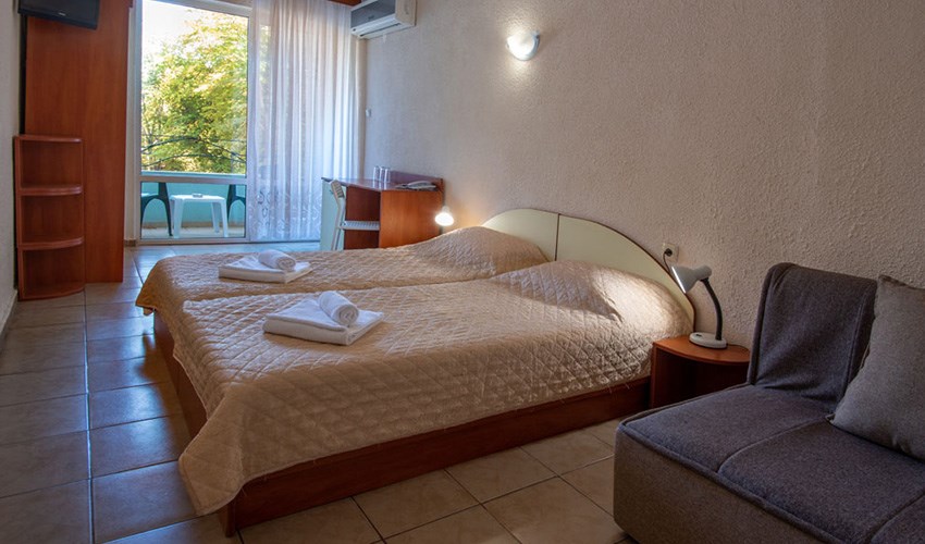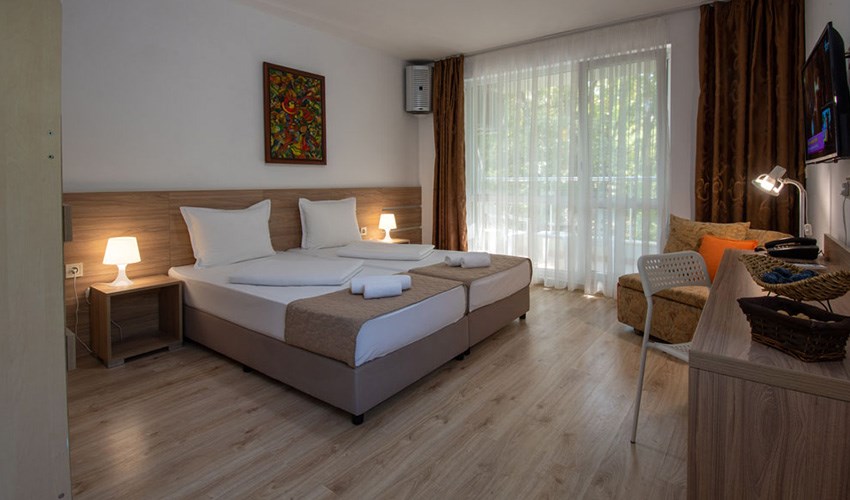 Hotel Ariana je moderní 3* hotel nacházející se v klidné části letoviska Kiten, uprostřed udržované vzrostlé zahrady, která vytváří příjemné prostředí pro odpočinkovou dovolenou. Hotel se nachází v blízkosti dvou pláží. Severní písečná pláž Atliman, známá svým pozvolným vstupem do moře, je vzdálena přibližně 200 metrů a je vhodná zejména pro rodiny s dětmi. Jižní pláž Kiten se nachází zhruba 1 kilometr od hotelu a nabízí další možnosti koupání a relaxace. Centrum letoviska Kiten, kde najdete obchůdky, restaurace, kavárny a bary, je vzdálené zhruba 700 metrů. Milovníci vodní zábavy mohou navštívit aquapark v Primorsku, který se nachází přibližně 3,5 km od hotelu. Součástí hotelového areálu je venkovní bazén se sluneční terasou, který poskytuje příjemnou alternativu k pobytu u moře. Hosté zde mohou relaxovat na lehátkách a užívat si klidnou atmosféru zahrady. Díky své poloze, zázemí a přívětivému charakteru je hotel vhodný pro klienty všech věkových kategorií, zejména pro páry a hosty, kteří hledají pohodovou dovolenou v příjemném prostředí.