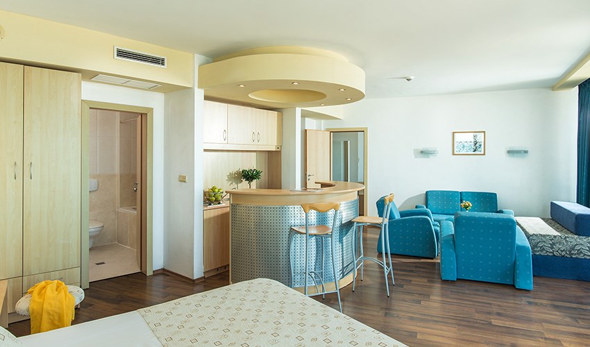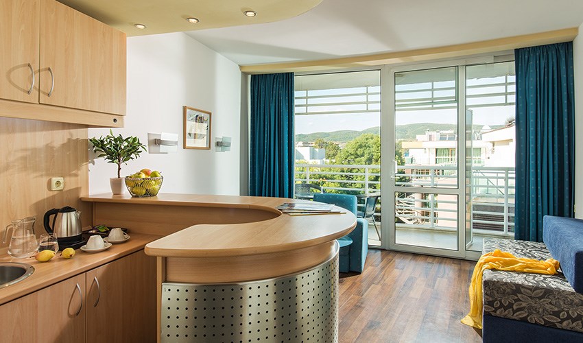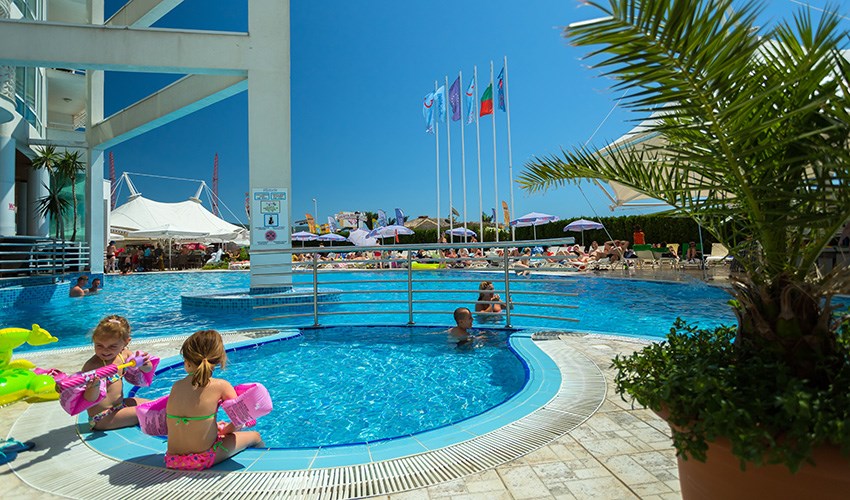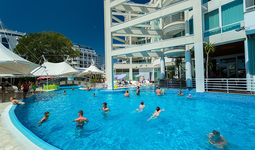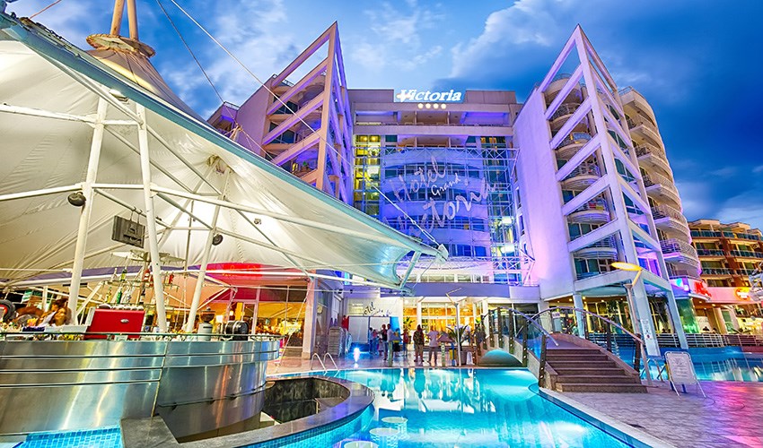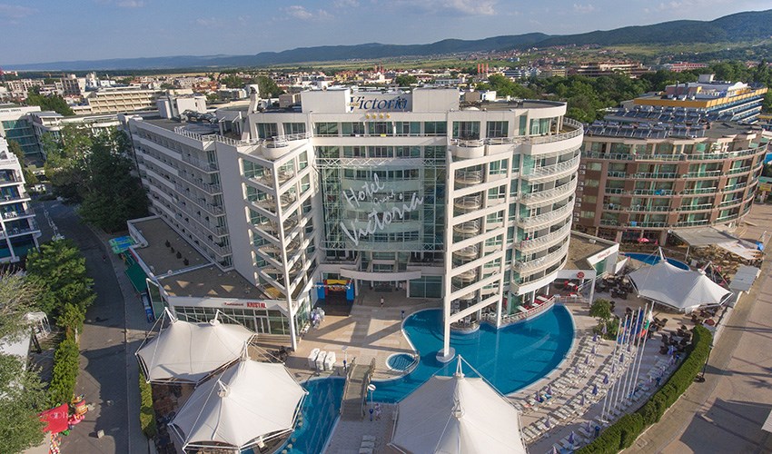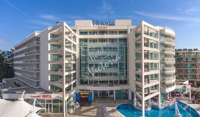 Hotel Effect Grand Victoria je čtyřhvězdičkový hotel ležící v oblíbeném letovisku Slunečné pobřeží. Pouhých 30 m od hotelu se nachází písečná pláž s pozvolným vstupem do moře. Centrum Slunečného pobřeží je vzdáleno cca 400 m. Obchody, bary a restaurace najdete po 50 m. Hotel doporučujeme zejména rodinám s dětmi.
