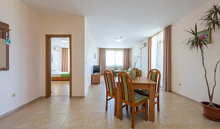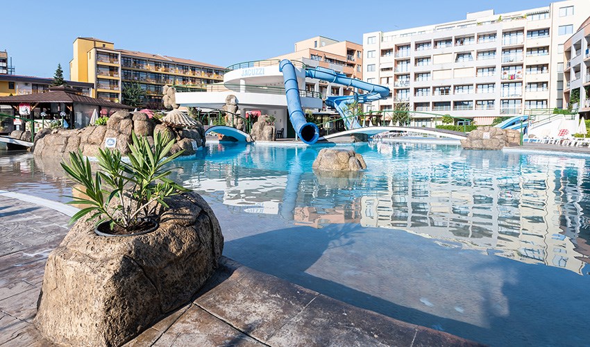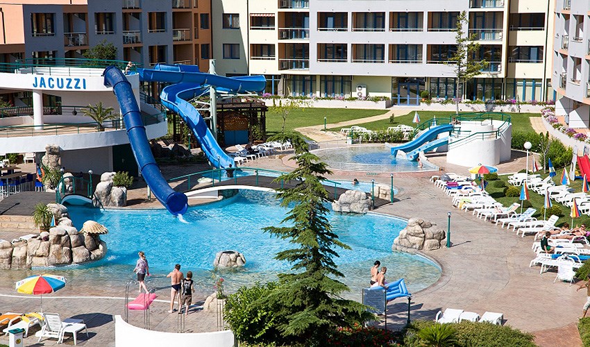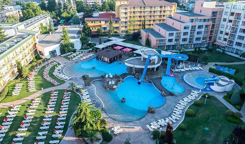 Hotel Trakia Plaza Apartments se nachází v letovisku Slunečné pobřeží přibližně 500 m od pláže a asi 1 km od centra s obchody a restauracemi. Nabízí klidnější ubytování s dobrou dostupností všech atrakcí a je vhodným výchozím bodem pro výlety po bulharském pobřeží. Areál je známý přátelskou atmosférou a zázemím pro rodiny s dětmi, včetně venkovního bazénu s dětskou částí, skluzavkami a tobogány, který je sdílen se sousedním hotelem Trakia Plaza, se kterým tvoří společný areál. Hosté mohou využít také animační programy, dětský klub, hřiště a all inclusive služby. Hotel doporučujeme především rodinám s dětmi a klientům hledajícím cenově dostupné ubytování v blízkosti pláže i centra.