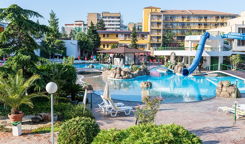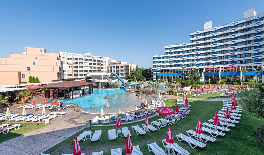 Hotel Trakia Plaza Apartments se nachází v letovisku Slunečné pobřeží přibližně 500 m od pláže a asi 1 km od centra s obchody a restauracemi. Nabízí klidnější ubytování s dobrou dostupností všech atrakcí a je vhodným výchozím bodem pro výlety po bulharském pobřeží. Areál je známý přátelskou atmosférou a zázemím pro rodiny s dětmi, včetně venkovního bazénu s dětskou částí, skluzavkami a tobogány, který je sdílen se sousedním hotelem Trakia Plaza, se kterým tvoří společný areál. Hosté mohou využít také animační programy, dětský klub, hřiště a all inclusive služby. Hotel doporučujeme především rodinám s dětmi a klientům hledajícím cenově dostupné ubytování v blízkosti pláže i centra.