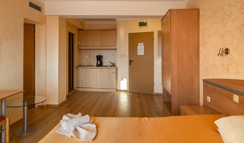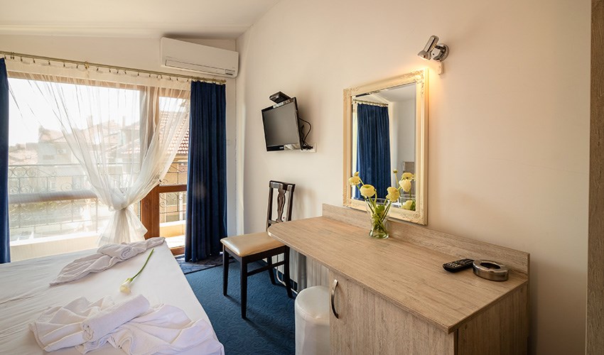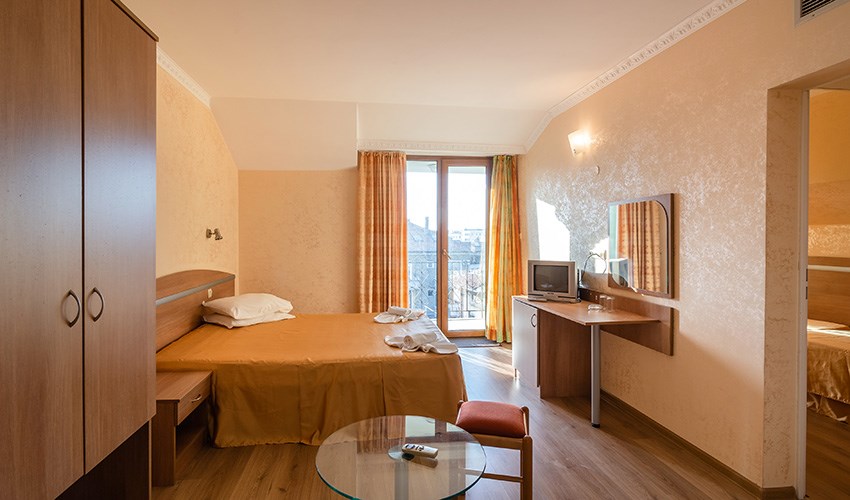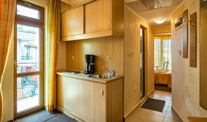 Hotel Zeus se nachází v malebné staré části města Pomorie na jižním pobřeží Bulharska u Černého moře a představuje klidné městské ubytování s výbornou polohou pouhých pár minut chůze od pláže a místních služeb. Hotel nabízí stylově zařízené pokoje a apartmány, které jsou vhodné jak pro páry, tak i pro rodiny či skupiny přátel. Vše je koncipováno tak, aby hosté mohli relaxovat během letní dovolené u moře nebo objevovat atmosféru historického města. Součástí hotelu je restaurace, známá svými tradičními bulharskými pokrmy i mořskými specialitami, která se těší dobré reputaci nejen mezi hosty, ale i místními návštěvníky. Díky své poloze v centru starého města a blízkosti rušné promenády u moře je ideální výchozí bod pro objevení Pomorie. Celkově hotel nabízí příjemnou, klidnější atmosféru u moře, dobré spojení s pláží i historickými památkami a možnost kombinovat relaxaci s poznáváním místní kultury. Doporučujeme jej zejména pro páry, které chtějí objevovat historické město a užít si klidnou dovolenou.