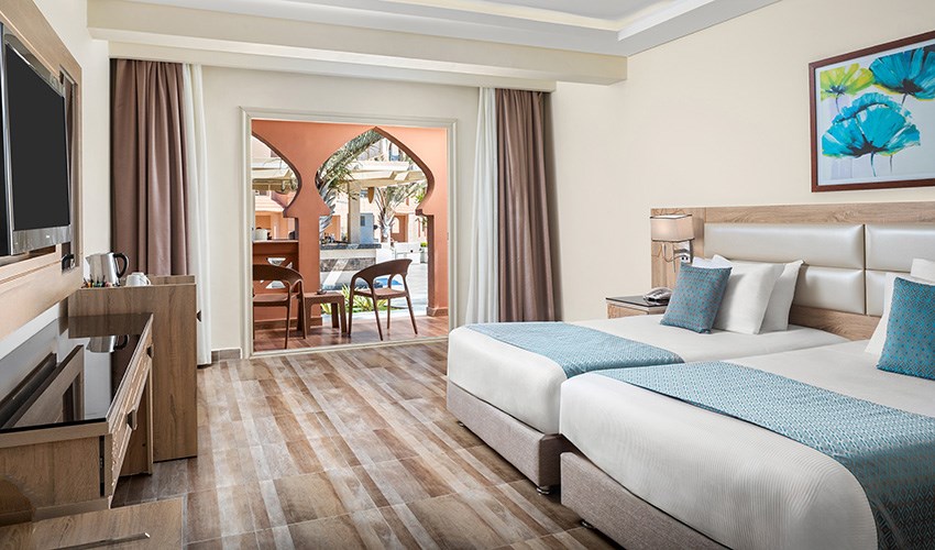 Tento oblíbený čtyřhvězdičkový hotel Aqua Vista Resort je situován v příjemné docházkové vzdálenosti od krásné písečné pláže a svým hostům nabízí jedinečnou atmosféru dokonalé dovolené. Celý hotelový komplex je doslova obklopen rozkvetlou zahradou plnou svěží zeleně, propletenou soustavou bazénů a lemovanou vzrostlými palmami, které poskytují vítaný stín a navozují pocit pravé exotiky. Resort disponuje veškerým potřebným vybavením pro relaxaci a odpočinek v klidném prostředí, což z něj činí ideální útočiště před všedními starostmi. Pro milovníky vodních radovánek a adrenalinu je velkým lákadlem možnost návštěvy sousedního aquaparku (vstup za poplatek), kde si na své přijdou jak dospělí, tak děti. Pokud zatoužíte po větším ruchu a změně prostředí, centrum letoviska s nepřeberným množstvím obchodů, restaurací a barů je od hotelu snadno a rychle dostupné. Díky této skvělé kombinaci relaxačního zázemí, možností zábavy a dostupnosti služeb ubytování vřele doporučujeme klientům všech věkových kategorií.