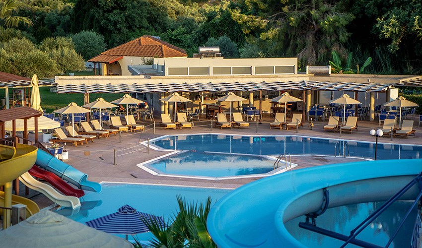 Hotel Kanali je situovaný v oblasti Kanali v blízkosti města Preveza v Řecku, přibližně 15 km od centra města Preveza. Hotel se nachází v bezprostřední blízkosti krystalicky čistých vod Jónského moře – pouhých cca 420 m od pobřeží, odkud lze snadno dojít na pláže jako Monolithi nebo Kanali a užívat si koupání a slunce během dne. Pokoje jsou plně vybaveny televizí, ledničkou, trezorem, koupelnou a toaletními potřebami zdarma. Hotel je zasazen do udržované zahrady v tradičním stylu Epiru, která vytváří příjemné prostředí pro odpočinek a relaxaci během pobytu. Na místě je k dispozici restaurace, která nabízí řecká i mezinárodní jídla, a dále snack bar u bazénu, otevřený během dne pro osvěžení a lehké občerstvení. Hotel má vodní park s tobogány a venkovními bazény, které přináší zábavu a osvěžení pro hosty všech věkových kategorií přímo v areálu. Další volnočasové a sportovní vybavení zahrnuje fotbalové hřiště, tenisový kurt a basketbalové hřiště, které jsou k dispozici pro aktivní hosty.