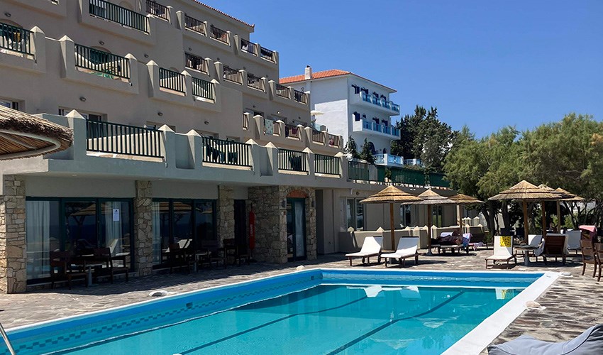 Aparthotel Cavos Bay se nachází v malebné zátoce Armenistis na severním pobřeží ostrova Ikaria a nabízí hostům jedinečný zážitek v autentickém kykladském prostředí. Tento šestipatrový hotel je postaven v tradičním stylu a poskytuje nádherný výhled na Egejské moře. V nabídce jsou prostorné pokoje s velkými balkony, z nichž lze obdivovat východní i západní západy slunce. Hosté mohou využít dvou venkovních bazénů s mořskou vodou a lehátka a slunečníky, ideálních pro relaxaci za slunečných dnů. Každé ráno je k dispozici bohatá snídaně formou bufetu, kterou si lze vychutnat na terase s výhledem na moře. Pro aktivní hosty je připravena nabídka sportovních aktivit, včetně stolního tenisu a možnosti rybaření. Ubytování se nachází pouhých 100 metrů od centra vesnice Armenistis, kde najdete restaurace, kavárny a obchody, 200 m od nejbližší pláže a 500 metrů od známých pláží Livadi a Messakti. Cavos Bay je ideálním místem pro ty, kteří hledají klidný a pohodlný pobyt v srdci přírody a tradiční řecké kultury.