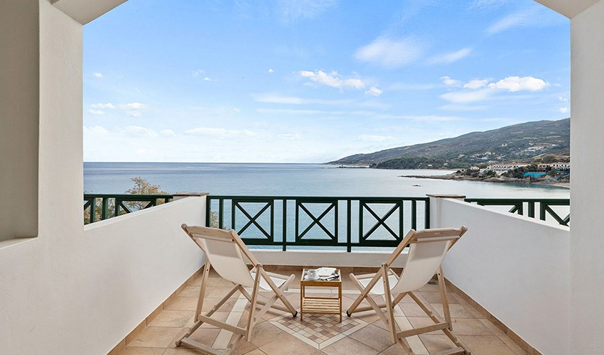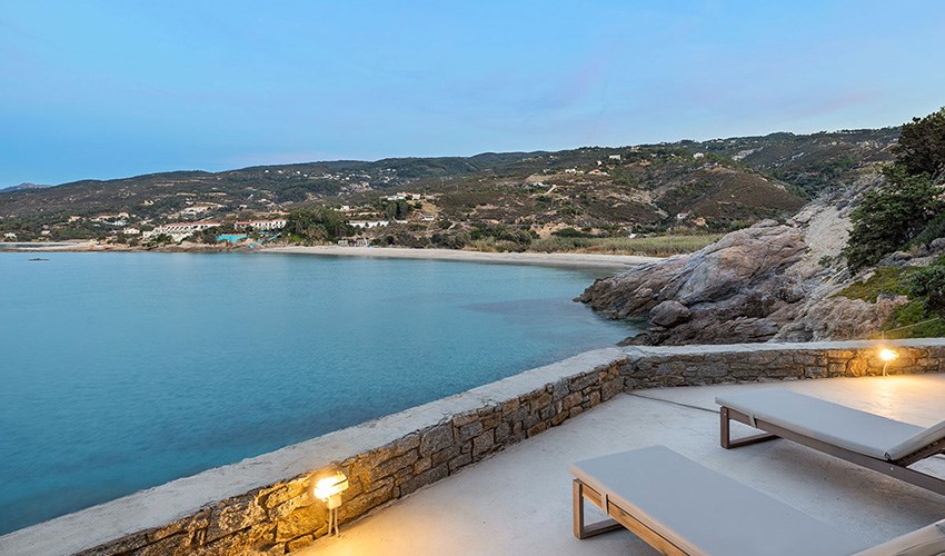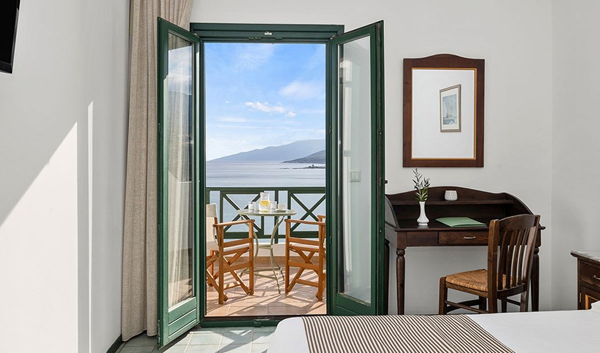 Hotel Erofili Beach se nachází v malebné vesnici Armenistis na ostrově Ikaria, přímo nad dvěma nejširšími písečnými plážemi ostrova Livadi a Mesakti, které jsou vzdálené jen přibližně 150 m. Tento elegantní hotel nabízí vkusně zařízené pokoje s klimatizací, minibarem, satelitní TV a prostornými balkony s výhledem na moře. Hosté mohou relaxovat u venkovního bazénu s mořskou vodou nebo si užít klid v malém Spa centru s vířivkou a terapeutickým bazénem. Každé ráno je podávána snídaně formou bufetu na slunné terase s panoramatickým výhledem. Hotel se nachází jen několik minut chůze od centra vesnice, kde najdete tradiční taverny a obchody. Díky své poloze a vybavení je Erofili Beach ideálním místem pro páry i rodiny hledající klidnou dovolenou v autentickém prostředí. Hosté oceňují přátelskou atmosféru a kvalitní služby, které přispívají k nezapomenutelné dovolené.