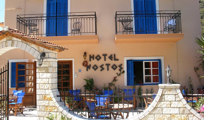 Hotel Nostos se nachází v klidné rybářské vesničce Frikes na severní části ostrova Ithaki, jen několik minut chůze od malého přístavu, taveren a obchůdků. Díky své poloze uprostřed zeleně, obklopený olivovníky a citroníky, nabízí ideální prostředí pro klidnou a autentickou dovolenou v duchu tradiční řecké pohostinnosti. Rodinný hotel je veden s osobním přístupem a pečlivou péčí o hosty. Součástí areálu je venkovní bazén se sluneční terasou a barem, kde si lze vychutnat odpočinek po dni stráveném na pláži či výletě po ostrově. Zahrada a společné prostory působí příjemně uvolněně a podtrhují přátelskou atmosféru celého místa. Díky své poloze je Nostos skvělým výchozím bodem pro poznávání severní části Ithaky. Hotel Nostos je ideální volbou pro páry i individuální cestovatele, kteří hledají pohodovou dovolenou v autentickém prostředí Jónských ostrovů, s kombinací klidu, přívětivé atmosféry a tradiční řecké pohostinnosti.