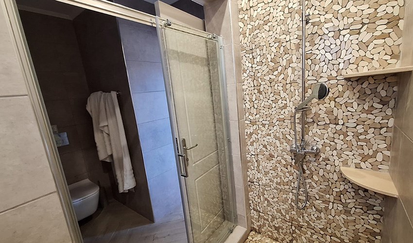 V místě ubytování nádherná velká pláž, téměř poloprázdné, jediná nevýhoda byl vstup moře, dosti velké kameny u vstupu do moře. Pro osoby s horší pohyblivosti to musí být hodně náročné, ne-li nebezpečné.