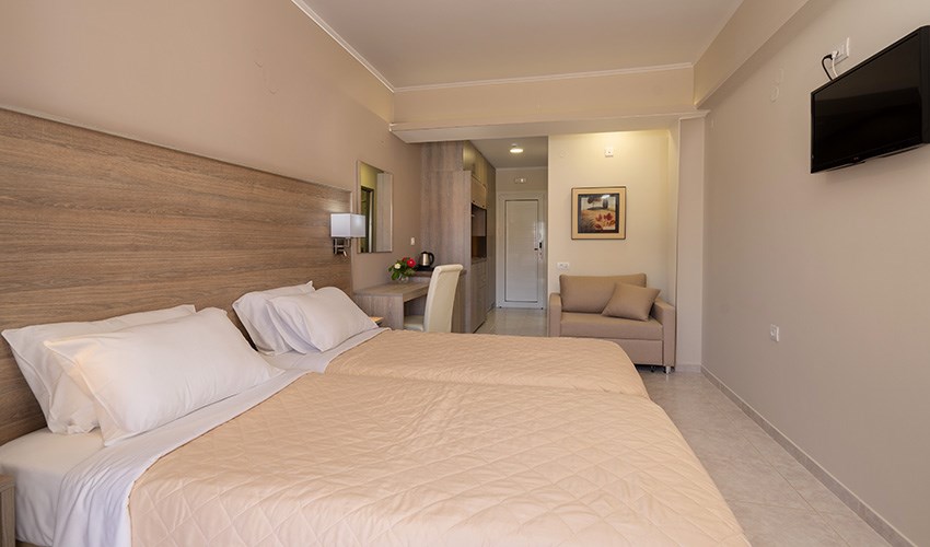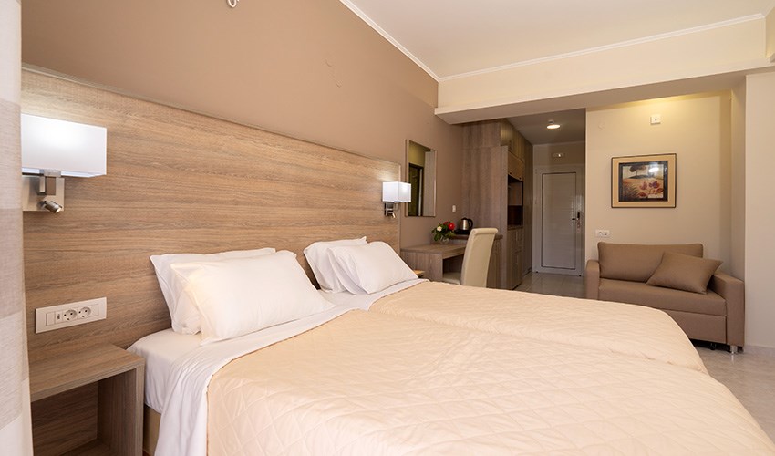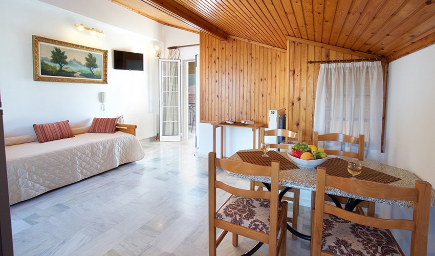 Apartmánový dům Diamanto Complex se nachází ve východní části ostrova Kefalonie, v malebné přímořské vesničce Karavomylos, jen 150 metrů od pláže. Komplex je ideální volbou pro rekreační ubytování a nabízí klidné prostředí u malebného jezera. Do města Sami, které je třetím největším městem ostrova a hlavním přístavem s denním spojením na pevninskou část Řecka a ostrov Ithaka, je to přibližně 2,5 kilometru. Diamanto Complex se skládá z prostorných a elegantně zařízených studií a apartmánů s vlastní koupelnou, kuchyňským koutem, rychlovarnou konvicí, klimatizací, Wi-Fi a balkonem nebo terasou. Hosté mohou využít venkovní bazén s lehátky a slunečníky, Wi-Fi a veřejné parkoviště, což dohromady poskytuje komfortní a pohodlný pobyt v blízkosti pláže i místních služeb.