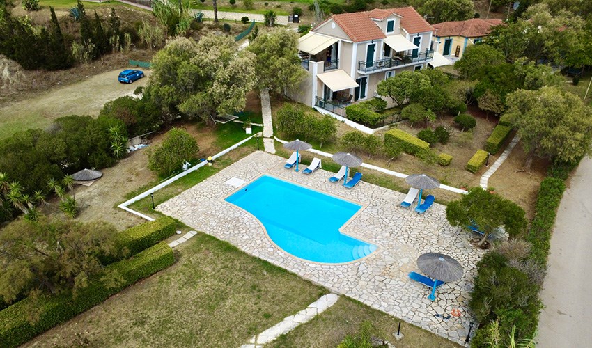 Xi Village je moderní a atraktivní resort situovaný na jižním pobřeží poloostrova Paliki na západě Kefalonie, pouhých 100 m od slavné pláže Xi Beach. Okolí resortu je velmi atraktivní a spojuje kosmopolitní atmosféru s klidem a mírem, vše v zelené oblasti ideální pro procházky a relaxaci, zároveň v těsné blízkosti obchodní čtvrti Lixouri, kde se nacházejí obchody, restaurace, taverny a kavárny. Pláž Xi je unikátní svým jemnozrnným měděným pískem, mělkou křišťálově čistou vodou a nádhernými západy slunce. K pláži je pohodlný přístup soukromou cestou přes pozemek resortu, což zajišťuje komfort a soukromí. Resort Xi Village nabízí hostům řadu kvalitních zařízení a služeb, včetně venkovního bazénu obklopeného lehátky, slunečníky, bezplatného Wi-Fi ve společných prostorách, dětského hřiště a grilu. Blízké okolí poskytuje možnosti vodních sportů, lekcí a aktivní zábavy, stejně jako návštěvy místních památek a kulturně významných míst. Xi Village představuje ideální volbu pro hosty, kteří hledají kombinaci klidu, přírody, autentické atmosféry ostrova a komfortního pobytu přímo u jedné z nejkrásnějších pláží Kefalonie.
