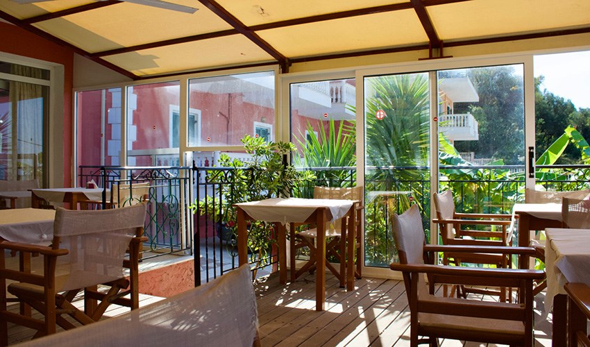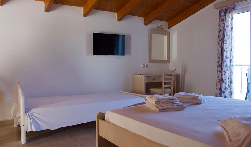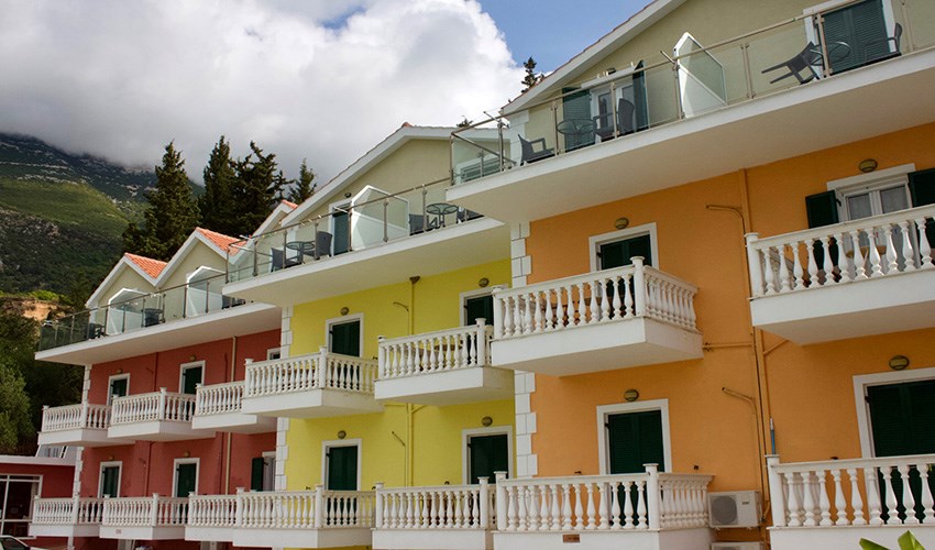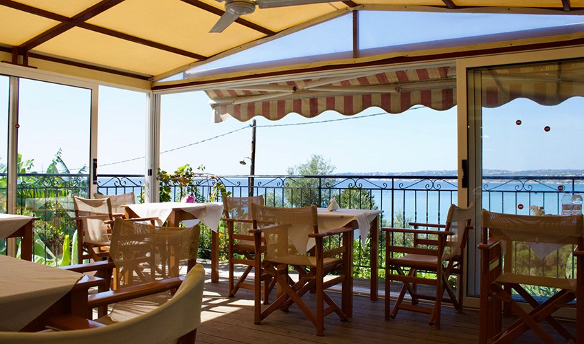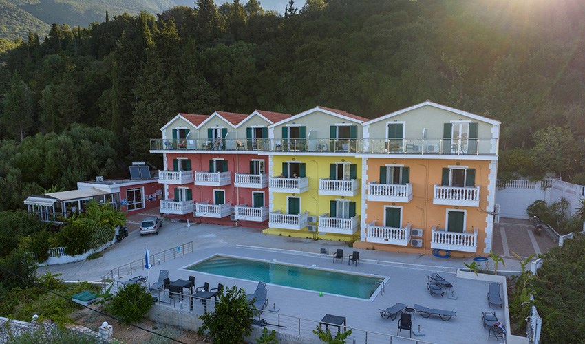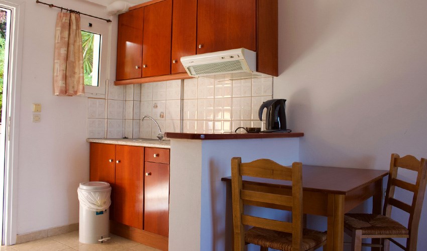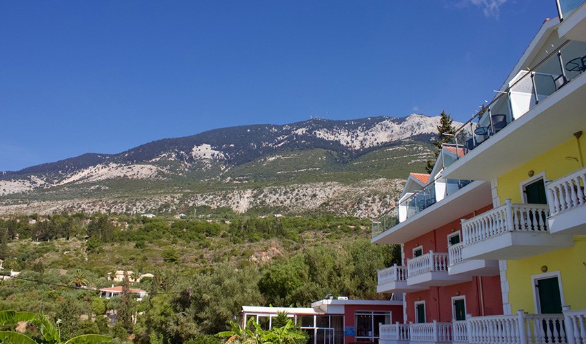 Studia Agios Gerasimos se nacházejí v jižní části Kefalonie, v půvabné vesničce Lourdata, která je typickým příkladem tradičního řeckého letoviska. Vesnice je postavena amfiteátricky na svahu, což umožňuje nádherné výhledy na okolní krajinu a azurové Jónské moře, ale zároveň ubytování není vhodné pro klienty s omezenou pohyblivostí. Studia leží jen asi 200 m od písečné pláže s pozvolným vstupem do moře, ideální pro pohodové chvíle u vody. Díky své poloze mimo hlavní turistický ruch nabízí klid a relaxaci, přičemž v docházkové vzdálenosti naleznete taverny, restaurace, bary a minimarkety. Hlavní město ostrova, Argostoli, je vzdálené pouhých 17 km, což umožňuje snadné výlety a objevování místních zajímavostí. Studia jsou vhodná pro hosty, kteří chtějí strávit dovolenou v harmonii s okolní krajinou a přitom mít snadný přístup ke všem základním službám a možnostem zábavy.