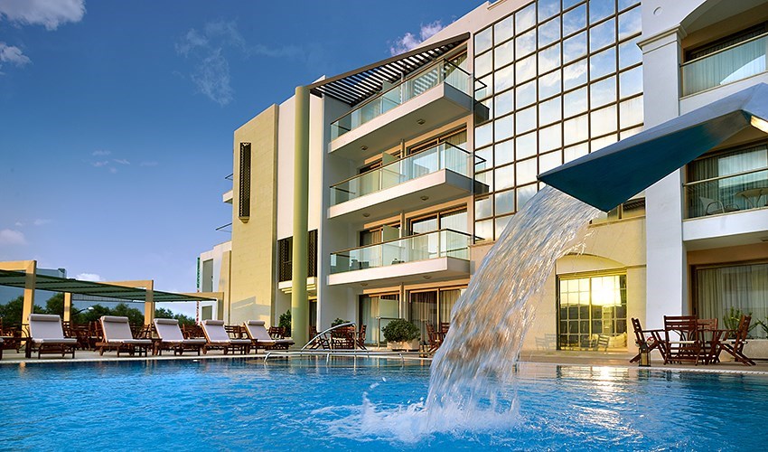 Velmi příjemný hotelový komplex skládající se ze tří budov leží v malém zálivu jen 60 m od písečné pláže, od níž je oddělen příjezdovou cestou. Centrum živého letoviska je vzdáleno cca 300 m, první obchůdky a nákupní možnosti se nachází 30 m od hotelu, autobusová zastávka leží 400 m od hotelu. Díky bohaté nabídce služeb je hotel vhodný pro náročnější klienty nebo pro klienty mladších věkových kategorií, kteří upřednostní rušnější prostředí a svůj pobyt chtějí obohatit zábavou v nedalekém centru pulzujícího letoviska Hersonissos, které nabízí bary, diskotéky, restaurace. Nedaleko hotelu Albatros se nachází také golfové hřiště (cca 8 km).