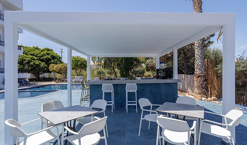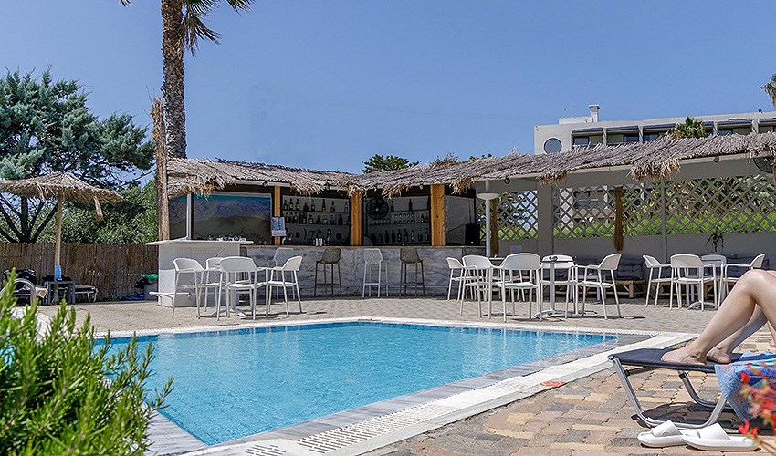 • venkovní bazén, sluneční terasa (lehátka a slunečníky u bazénu zdarma; na pláži za poplatek)
