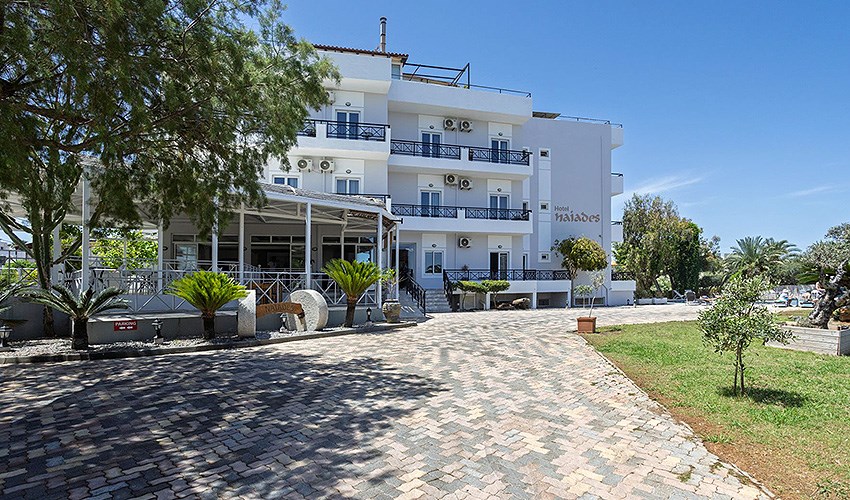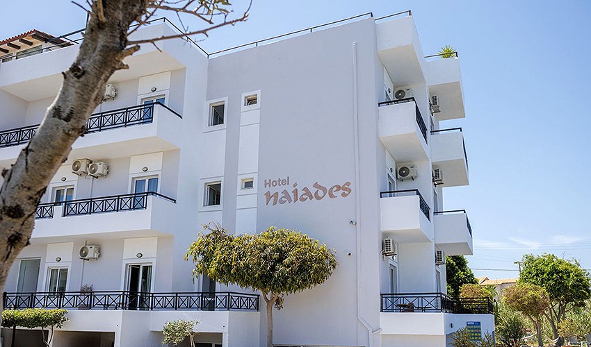 Hotel Naiades se nachází v klidné části letoviska Gouves, přibližně 230 m od oblázkovo-písečné pláže. Centrum Gouves je vzdáleno asi 3,5 km a nabízí restaurace, taverny, bary i obchody. Díky své poloze je hotel vhodný pro klienty, kteří hledají klidnou dovolenou s dobrou dostupností do živějších částí letoviska. Ubytování je zajištěno v jednoduše a účelně zařízených dvoulůžkových pokojích, které jsou vybaveny klimatizací, SAT/TV, Wi-Fi připojením, lednicí a balkonem nebo terasou. Pokoje poskytují příjemné zázemí zejména pro páry během celého pobytu. Součástí hotelu je venkovní bazén se sluneční terasou a nechybí ani zahrada vhodná k odpočinku. Hosté mohou využít také snídaňovou místnost a bar. Hotel doporučujeme klientům, kteří hledají klidné ubytování v blízkosti pláže s příjemnou atmosférou.
