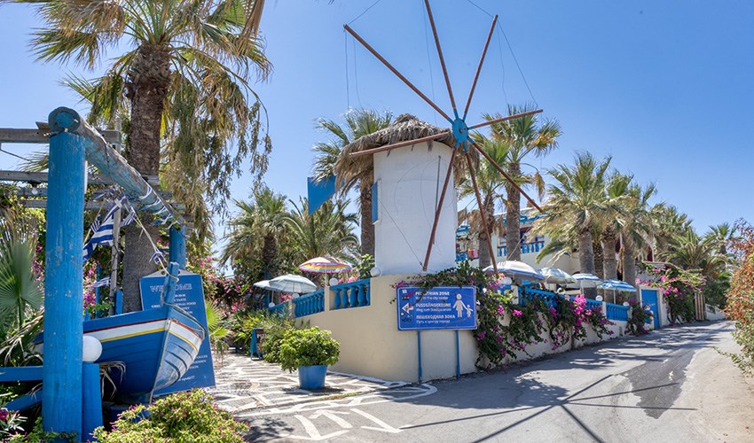 Hotel Palm Bay se nachází v klidné části malebného letoviska Sissi na severním pobřeží Kréty. Díky své poloze přímo u pobřežní promenády nabízí krásný výhled nejen na třpytící se hladinu Egejského moře, ale i na malebný přístav, který dodává místu nezaměnitelnou atmosféru tradiční řecké vesničky. Samotný hotel je obklopen udržovanou palmovou zahradou, která vytváří příjemné prostředí pro odpočinek a chvíle pohody. V blízkosti hotelu asi 20 m najdete autobusovou zastávku, supermarket a pekárnu. Do rušnějšího letoviska Malia je to přibližně 6,5 km. K vybavení hotelu patří bazén, sluneční terasa s lehátky a slunečníky zdarma, kde si hosté mohou vychutnat středomořské slunce, a dále restaurace a bar s nabídkou řeckých specialit i osvěžujících nápojů. Díky své pohodové atmosféře, krásnému výhledu a výborné poloze je hotel Palm Bay vhodnou volbou jak pro páry, které hledají klid a romantiku, tak i pro rodiny s dětmi, které ocení blízkost pláže a možnost večerních procházek po kouzelném přístavu letoviska Sissi. Hotel je určen spíše pro méně náročné klienty, kteří ocení jeho jednodušší, avšak útulné vybavení.