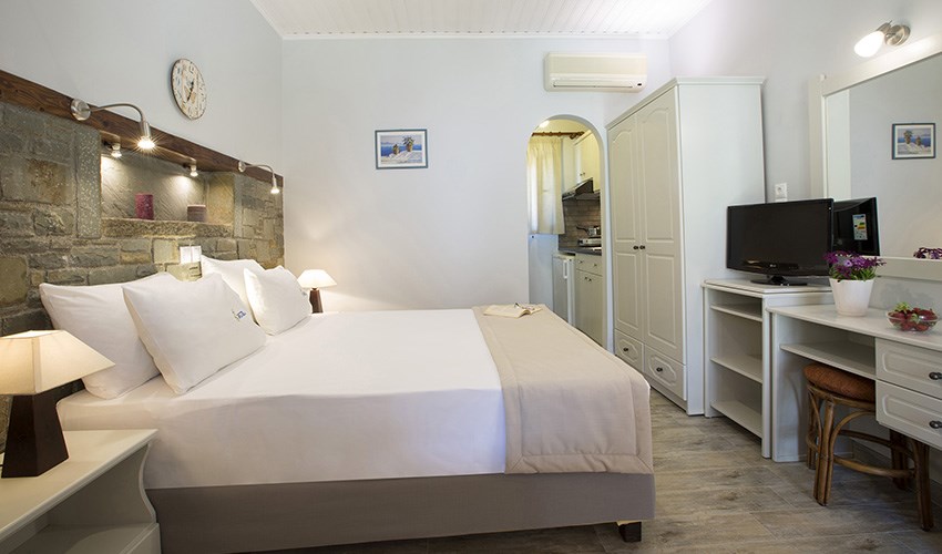 Apartmánový komplex Villa Elia se nachází v klidné lokalitě na okraji města Lefkada, přibližně 1 km od centra a jen pár minut chůze od pláže oceněné Modrou vlajkou. Tento moderní komplex tvoří tři elegantní budovy – Villa Elia, Alselia a Castelia – které společně nabízejí ideální kombinaci pohodlí, relaxace a aktivit pro celou rodinu. Ubytování je zajištěno v moderních studiích a apartmánech s plně vybaveným kuchyňským koutem, TV, telefonem, klimatizací a Wi-Fi připojením. Areál je zasazen do rozlehlé, udržované zahrady s množstvím zeleně, kde hosté naleznou venkovní bazén pro dospělé, dětský bazén s hydromasáží, dětské hřiště, tenisový kurt, basketbalové a volejbalové hřiště i stolní tenis. K dispozici za poplatek je také wellness centrum se saunou, soláriem a fitness. Dále komplex nabízí relaxační zahrady a snack bar, kde se podávají i snídaně. Villa Elia představuje ideální volbu pro páry i rodiny s dětmi, kteří hledají kombinaci klidného prostředí, komfortního zázemí a snadného přístupu k moři i centru města Lefkada.