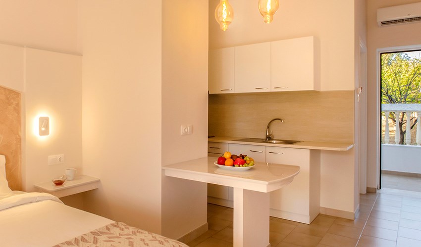 Hotel Marilen na ostrově Leros se nachází přibližně 400 m od pláže v malebném zálivu Alinda a působí jako klidná oáza obklopená zelení. Komplex tvoří několik menších budov zasazených do pečlivě udržované zahrady s květinami a olivovníky, mezi nimiž se nachází prostorný bazén s lehátky a slunečníky, ideální pro odpočinek i osvěžení po dni stráveném u moře nebo při objevování krás ostrova. Ubytování zahrnuje útulná studia a suity, všechny moderně vybavené kuchyňským koutem, klimatizací, vlastní koupelnou a balkonem či terasou s výhledem do zahrady, na bazén nebo okolní kopce. Celý areál dýchá pohodou rodinného vedení, personál je přátelský a ochotný, hostům poskytuje veškerý komfort a pomáhá s organizací výletů, pronájmem auta či dalších aktivit. Marilen je ideální pro páry, rodiny i skupiny přátel, kteří hledají kombinaci klidného odpočinku, komfortního ubytování a příjemného prostředí s blízkostí pláže i přírodní krásy ostrova.