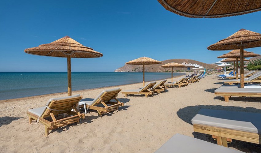 Hotel Porto Plaza Beach Resort na ostrově Lemnos představuje luxusní ubytování přímo u zlatavé písečné pláže Agios Ioannis Kaspakas, která je vzdálena přibližně 100 metrů, a kde se snoubí nekonečné moře s malebnými horami ostrova. Tento čtyřhvězdičkový resort nabízí kombinaci elegantního italského designu, moderního komfortu a špičkových služeb, které zaručují dokonalý odpočinek i aktivní dovolenou, a hostům je k dispozici také bazén pro osvěžující koupání a relaxaci. Hotel je vzdálen pouhých 8 kilometrů od přístavu Myrina, což umožňuje snadný přístup a objevování krás ostrova. V přístavu Agios Ioannis, přímo u rozlehlého tyrkysového moře a s nádherným výhledem na západ slunce, se nachází plážový bar, kavárna a restaurace. Po celý den zde hosté mohou vybírat z široké nabídky teplých i studených nápojů připravených z kvalitní směsi kávy a ochutnat rozmanité vařené či pečené pokrmy. Toto ubytování představuje ideální volbu pro páry, rodiny i skupiny přátel hledající pohodlí, luxus a autentickou atmosféru řeckého ostrova Lemnos.