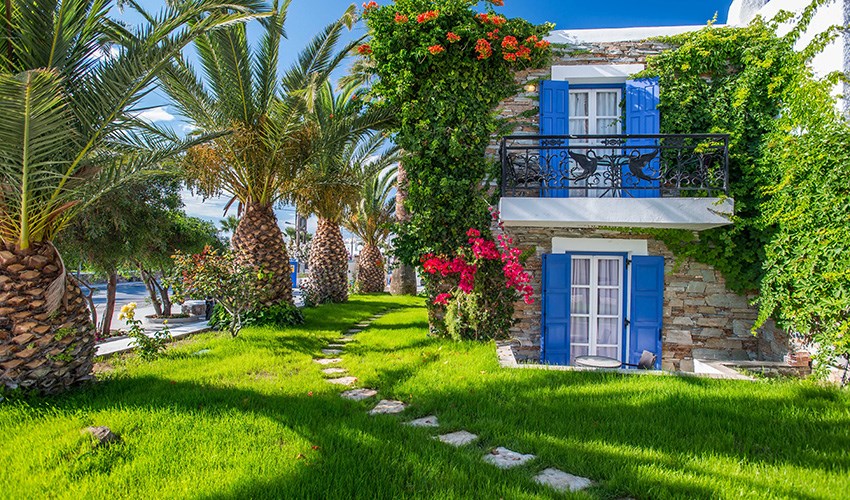 Hotel Naxos Holidays je ideální volbou pro ty, kdo touží po klidné a pohodové dovolené v srdci krásného ostrova Naxos. Tento tradiční hotel je navržen v typickém kykladském stylu s bílými fasádami a modrými okenicemi, které dokonale zapadají do autentické atmosféry řeckého ostrova. Hosté si mohou vychutnat pohostinnost v přátelském prostředí, kde nechybí ani krásně udržovaná zahrada s bazénem, slunečníky a lehátky, ideální pro relaxaci během horkých letních dnů. Pokoje jsou jednoduše a pohodlně zařízené, vybavené klimatizací, televizí a vlastním balkonem nebo terasou, odkud si můžete užívat výhled do okolí. Hotel se nachází jen kousek od centra města Naxos, které je plné taveren, kaváren a obchodů. K historickým památkám, jako je slavná Portara, to budete mít jen krátkou procházku. Oblíbená pláž Agios Georgios je vzdálena přibližně 450 m a je ideální pro rodiny i milovníky vodních sportů, včetně windsurfingu a šnorchlování.