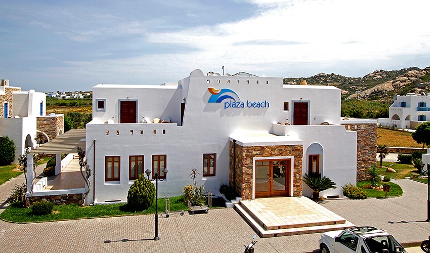 Plaza Beach Hotel je elegantní hotel v tradičním kykladském stylu situovaná v blízkosti jedné z nejkrásnějších písečných pláží Řecka – Plaka Beach, což z něj dělá ideální výchozí bod pro dovolenou u moře na ostrově Naxos. Hotel se nachází jen pár kroků od pláže s pozvolným vstupem do Egejského moře, obklopen tavernami, beach bary a příjemnou letní atmosférou. Hotel nabízí komfortní a prostorné pokoje s balkony nebo terasami. V areálu se nachází velký venkovní bazén s relaxační zónou, jacuzzi a dětským bazénem, ideální pro odpočinek po dni stráveném u vody. Součástí areálu je hotelová restaurace a pool bar, kde si můžete dát lehké občerstvení, osvěžující koktejly nebo tradiční středomořská jídla s výhledem na moře. Plaza Beach Hotel je rovněž vybaven fitness centrem. Díky své výjimečné poloze přímo u pláže, komfortnímu zázemí a pestré nabídce služeb hotel zaručuje nezapomenutelnou dovolenou plnou slunce, moře a autentické řecké pohostinnosti.