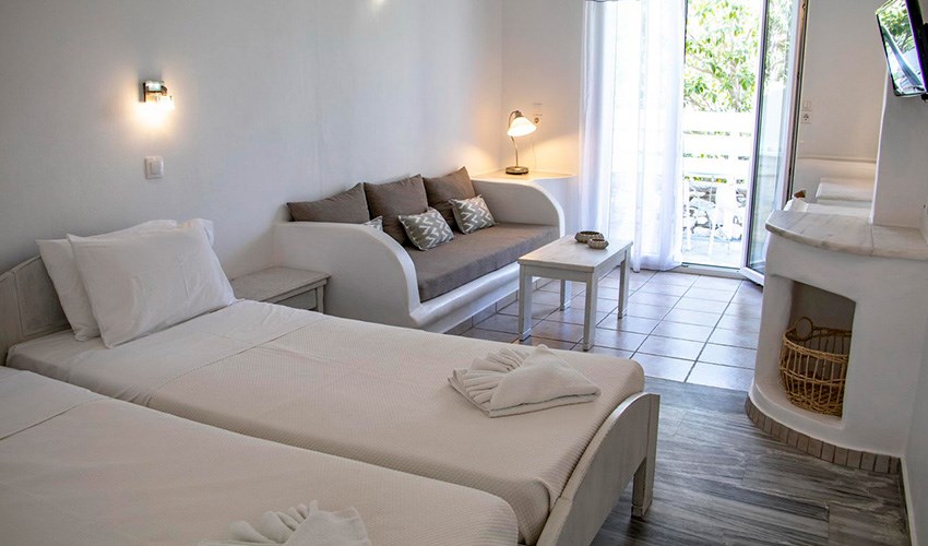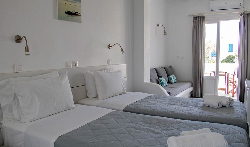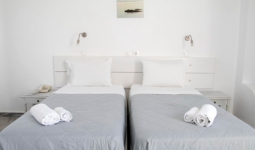 Hotel Manos je příjemný 3* hotel situovaný v klidné části oblíbeného letoviska Naoussa na ostrově Paros, odkud je to jen krátká procházka do centra města i k místním plážím. Hotel poskytuje útulné a komfortní ubytování v prostorných pokojích, které jsou vybaveny moderním zařízením a mají balkon nebo verandu, ideální pro chvíle odpočinku po dni stráveném u moře nebo poznáváním okolí. Celková atmosféra hotelu je přátelská a neformální, což ocení hosté hledající pohodovou dovolenou v řeckém stylu. Během dne mohou hosté relaxovat u venkovního bazénu se sluneční terasou a lehátky, který poskytuje příjemné zázemí pro odpočinek i osvěžení. Velkou výhodou hotelu je jeho docházková vzdálenost od přístavu Naoussa, kde se soustředí široká nabídka restaurací, tradičních taveren, obchodů a malebných uliček. Hosté tak mohou snadno kombinovat odpočinek u bazénu s večerními procházkami, gastronomickými zážitky a nasáváním místní atmosféry. Hotel Manos doporučujeme zejména párům a klientům, kteří hledají klidné, pohodlné ubytování s výbornou polohou, a chtějí si užít autentickou atmosféru jednoho z nejkrásnějších letovisek na ostrově Paros.