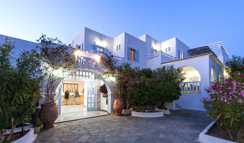 Hotel Narges je komfortní 4* hotel na řeckém ostrově Paros, zasazený přímo v malebném přístavním letovisku Aliki na jižním pobřeží. Hotel je postaven v tradiční kykladské architektuře s jasnými barvami a prostornými verandami, které doplňují autentičnost řeckého prostředí a dávají pobytu jedinečný středomořský nádech. Ubytování zahrnuje prostorné pokoje vybavené klimatizací, TV a balkónem či verandou, odkud si hosté mohou vychutnat výhledy na okolní krajinu či moře. Rozlehlý venkovní bazén obklopen lehátky a slunečníky je ideálním místem pro relaxaci během dne a nabízí osvěžující zážitek po dopoledním koupání na pláži. K tomu hotel disponuje pool barem, zahradou a příjemnými venkovními posezeními. Narges Hotel je vhodný především pro klienty, kteří hledají klidnou, autentickou a pohodovou dovolenou v tradičním řeckém prostředí, mimo velké a rušné resorty.