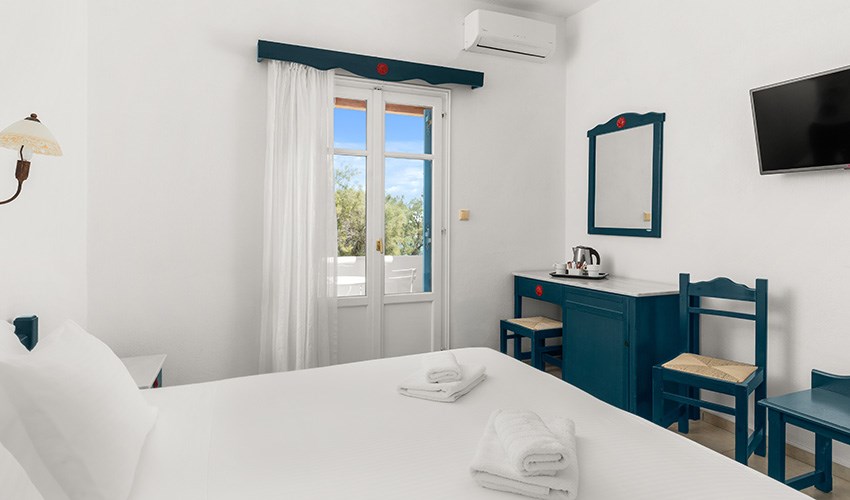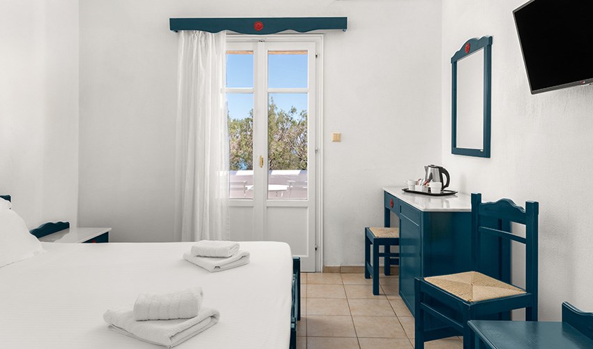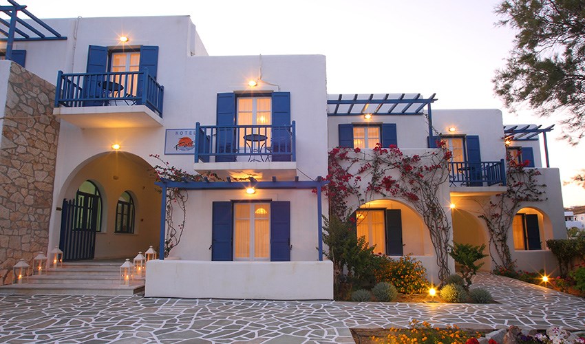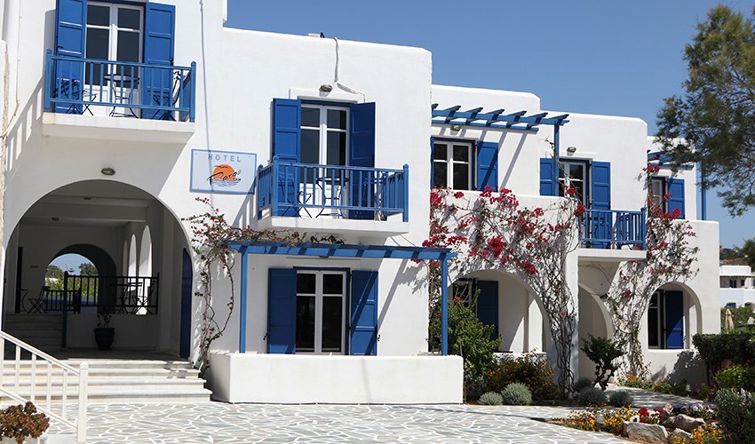 Paros Inn Seafront je menší a velmi útulný hotel situovaný přímo na pláži Logaras, jedné z nejkrásnějších pláží jihovýchodního pobřeží ostrova Paros. Díky poloze jen pár kroků od moře si zde hosté mohou užívat opravdový dovolenkový klid, šumění vln a nádherné výhledy na Egejské moře po celý den. V bezprostředním okolí se nachází tradiční taverny, kavárny i menší obchody, kde lze ochutnat místní speciality a vychutnat si večerní posezení u moře. Přístavní letovisko Piso Livadi je dostupné příjemnou procházkou a nabízí další možnosti stravování i výletních plaveb. Paros Inn Seafront je také výborným výchozím bodem pro objevování ostrova Paros. V blízkosti se nachází další oblíbené pláže, malebné vesničky i místa vhodná pro krátké výlety. Lokalita má dobré spojení do ostatních částí ostrova, což umožňuje snadno kombinovat odpočinek u moře s poznáváním tradičního řeckého života. Hotel je ideální volbou pro klienty, kteří hledají pohodovou a uvolněnou atmosféru mimo rušná letoviska, a přesto chtějí mít vše potřebné na dosah ruky.