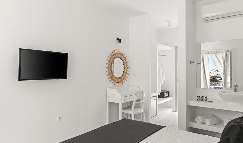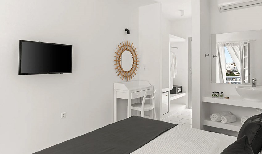 Hotel Sunrise Accommodation se nachází v tradiční části městečka Naoussa, v lokalitě Analipsi, jen pár kroků od řady restaurací, kaváren a možností večerní zábavy, přitom poskytuje klidné prostředí pro odpočinek a relaxaci. Hotel je ideálně situován přibližně 570 metrů od pláží a pouhých pět minut od centra malebné Naoussy, což zajišťuje kombinaci pohodlí, krásné přírody a dostupnosti plážových aktivit. Každý pokoj je vybaven vlastní koupelnou se sprchou a balkonem, některé jednotky navíc nabízejí úchvatný výhled na moře, který umocňuje zážitek z pobytu. Sunrise Accommodation poskytuje hostům příjemné, prostorné a světlé pokoje s praktickým vybavením, které vytváří pohodlné zázemí pro relaxační dovolenou, a zároveň nabízí snadný přístup k centru města i okolním atrakcím. Hotel je vhodný pro páry i rodiny hledající klidné místo s možností poznávání krás ostrova Paros, spojené s pohodlným ubytováním a příjemnou atmosférou.