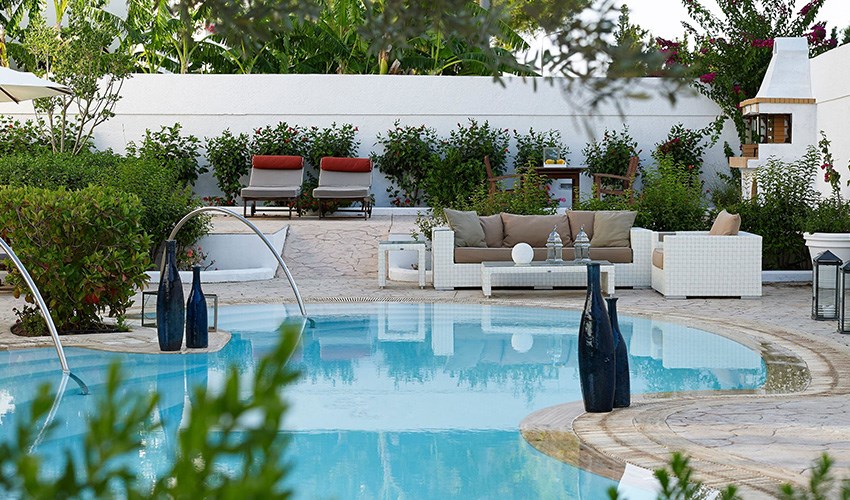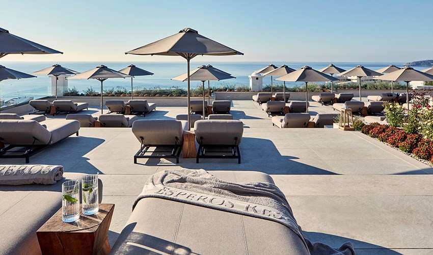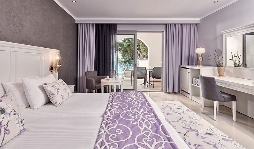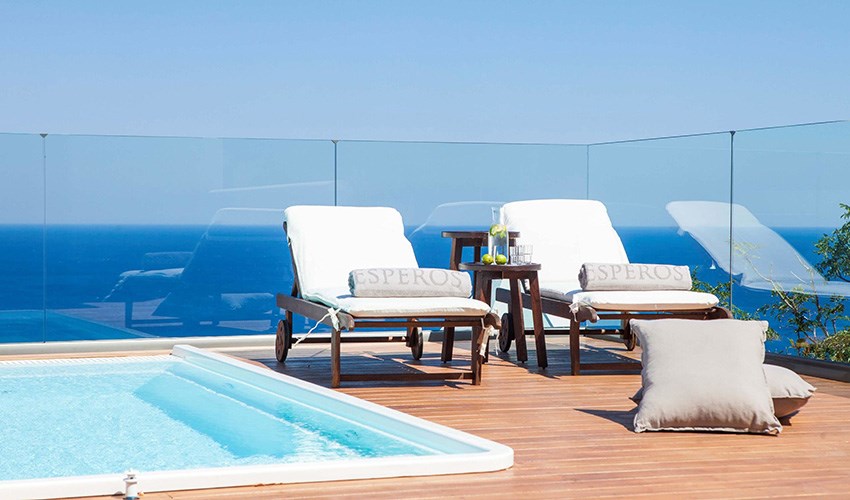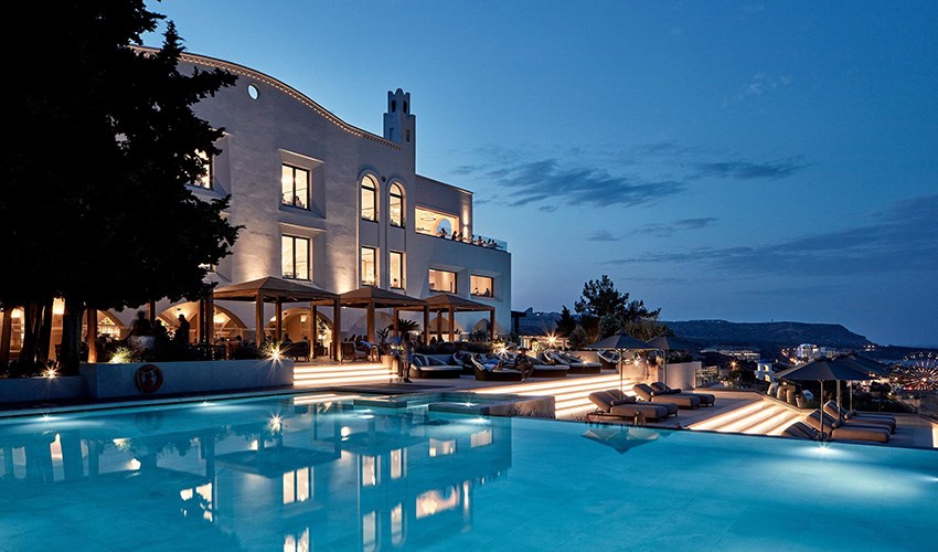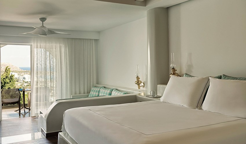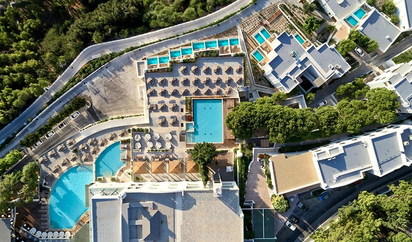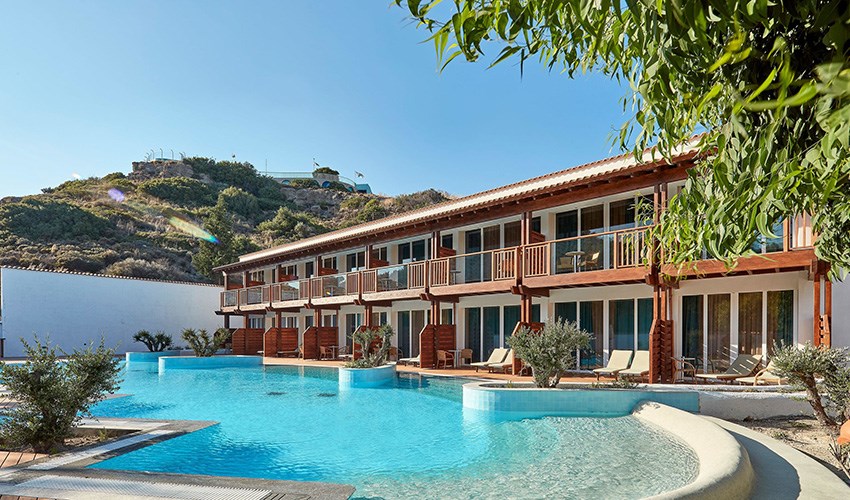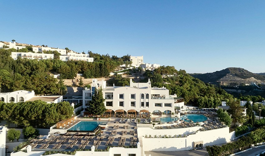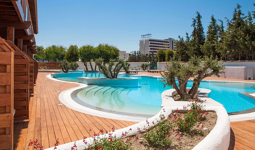 Luxusní pětihvězdičkový Esperos Village Blue & Spa hotel, který je určen pro dospělé osoby od 16 let, se nachází ve východní části ostrova na okraji letoviska Faliraki ve svahu 500 m nad pláží. Na písečnou pláž vás dopraví hotelový minibus. Hotel je obklopen nádherným přírodním prostředím plným borovicových a cypřišových stromů s panoramatickým výhledem na Středozemní moře; doporučujeme pro náročnější klientelu, která vyhledává romantické a klidné prostředí. Živá centra, která nabízí večerní zábavu, jsou dostupná místní dopravou - vzdálenost od Starého města Rhodos je 12 km, od lázní Kallithea 2 km, centrum Falikari je 3 km od hotelu.