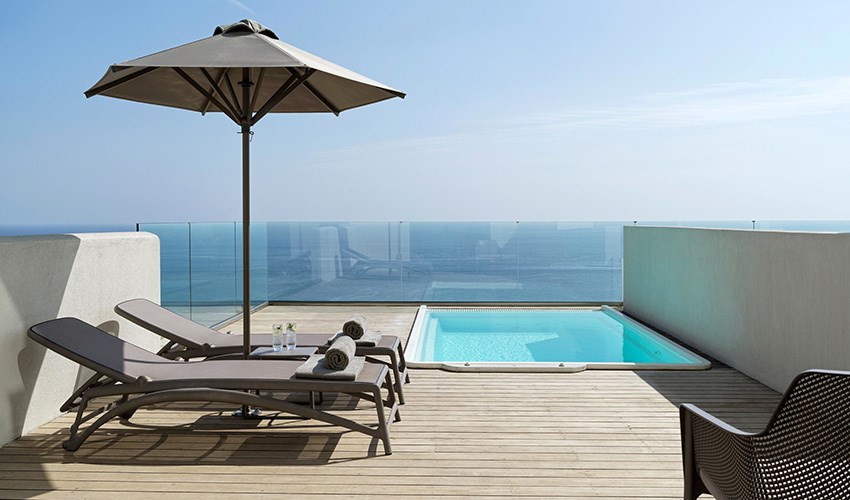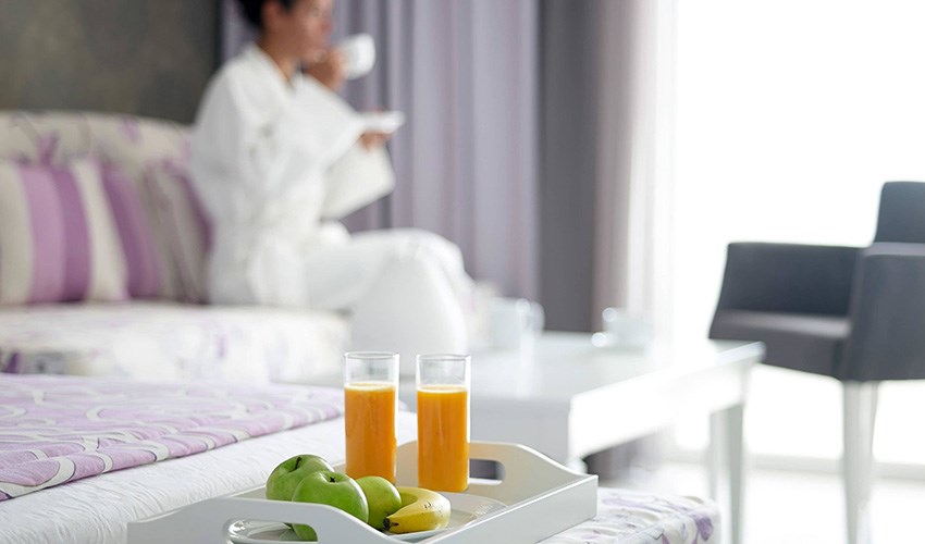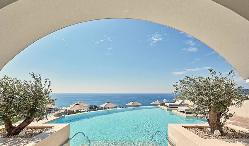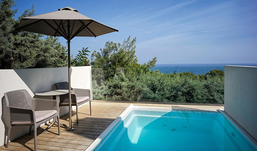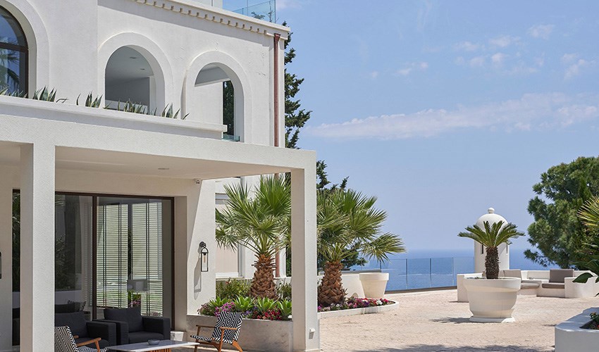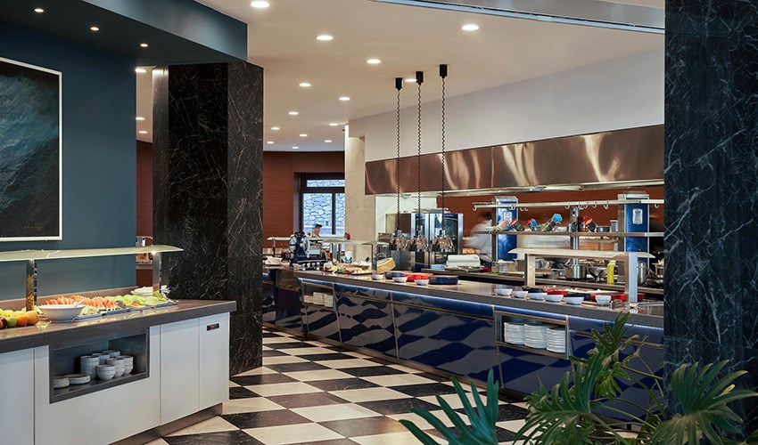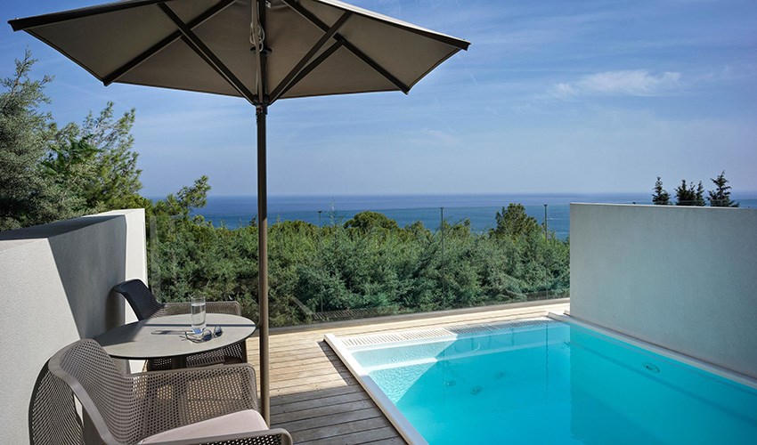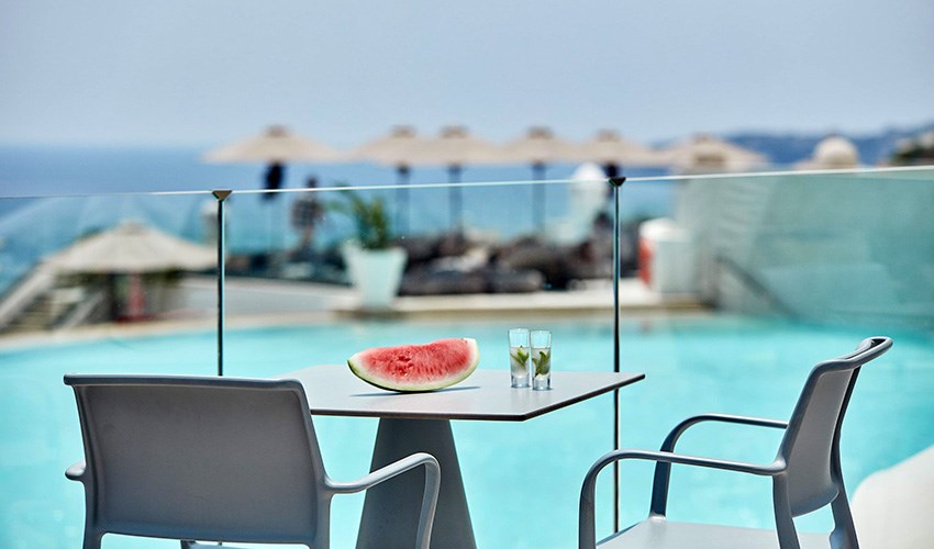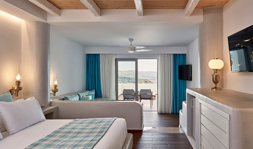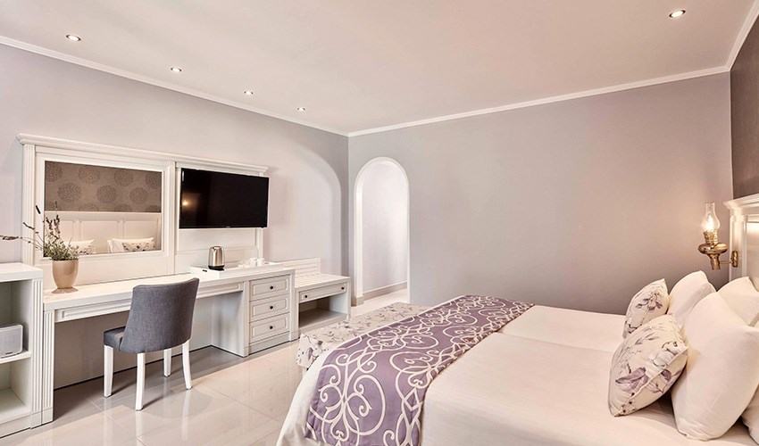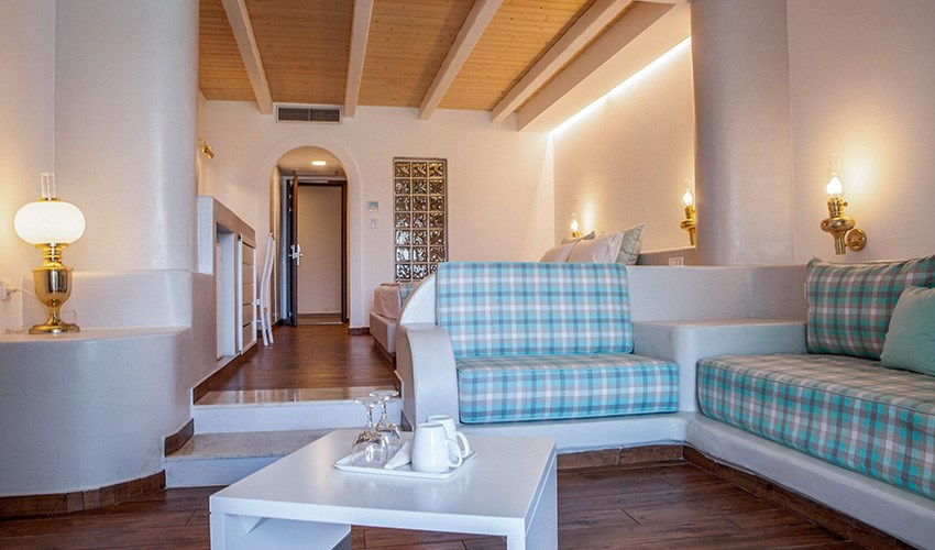 Luxusní pětihvězdičkový Esperos Village Blue & Spa hotel, který je určen pro dospělé osoby od 16 let, se nachází ve východní části ostrova na okraji letoviska Faliraki ve svahu 500 m nad pláží. Na písečnou pláž vás dopraví hotelový minibus. Hotel je obklopen nádherným přírodním prostředím plným borovicových a cypřišových stromů s panoramatickým výhledem na Středozemní moře; doporučujeme pro náročnější klientelu, která vyhledává romantické a klidné prostředí. Živá centra, která nabízí večerní zábavu, jsou dostupná místní dopravou - vzdálenost od Starého města Rhodos je 12 km, od lázní Kallithea 2 km, centrum Falikari je 3 km od hotelu.