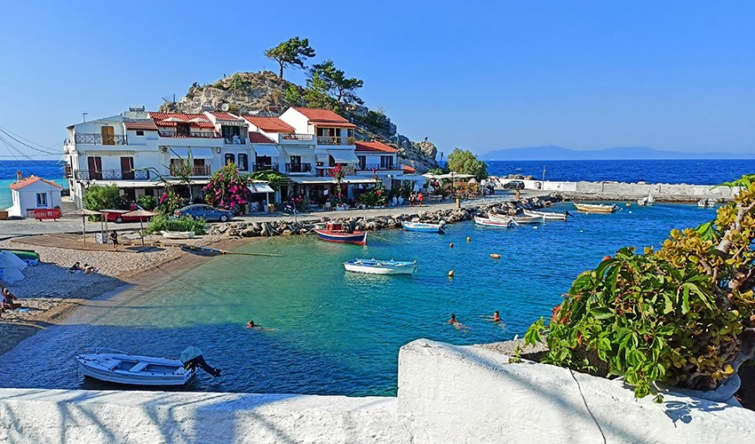 přístavní městečko Pythagorion, ležící na jihovýchodním pobřeží. Na Samosu je přes 20 pozoruhodných klášterů, které byly vystavěny převážně v 16. století. Na ostrově najdete oblázkové, ale i písečné pláže, které se táhnou v délce několika kilometrů nebo jsou naopak schovány v romantických zátokách. Díky příjemnému klimatu, krásným přírodním scenériím, tradiční řecké kuchyni a pohostinnosti místních obyvatel je Samos ideálním místem pro prožití krásné dovolené.