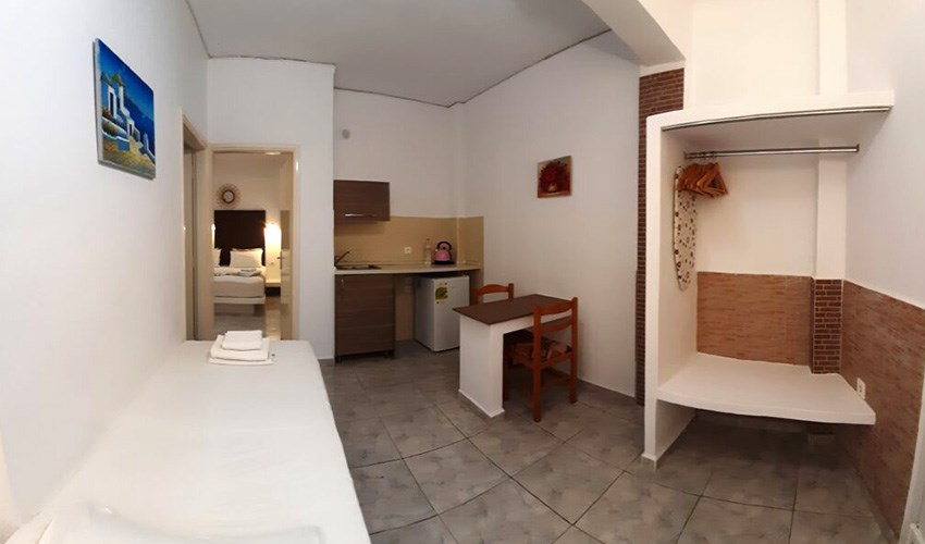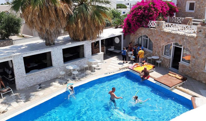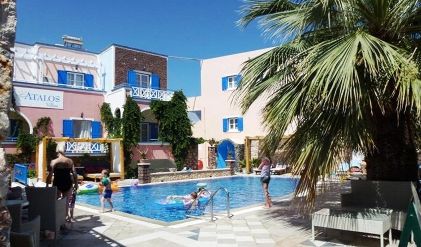 Příjemný a pečlivě udržovaný hotel Atalos Suites se nachází v klidnější části oblíbeného letoviska Kamari, jen asi 300 m od proslulé pláže s černým vulkanickým pískem. Díky své poloze nabízí ideální podmínky pro klidnou dovolenou s možností večerních procházek po promenádě plné obchodů, taveren a barů. Hotel tvoří několik budov v typickém kykladském stylu, obklopených rozkvetlými bugenvilejemi a upravenou zahradou. Ubytování je zajištěno v útulně zařízených studiích, která poskytují veškerý komfort pro pohodlný pobyt. Hosté mohou relaxovat na sluneční terase, osvěžit se v bazénu nebo si dopřát drink či čerstvou šťávu z pool baru. K odpočinku láká i venkovní vířivka. Hlavní město ostrova Thira je dostupné přibližně za 15 minut jízdy autobusem. Příjemná rodinná atmosféra, osobní přístup majitelů a skvělá poloha blízko pláže i centra dělají z hotelu Atalos Suites ideální místo pro romantický pobyt, rodinnou dovolenou i klidnou relaxaci ve dvojici.