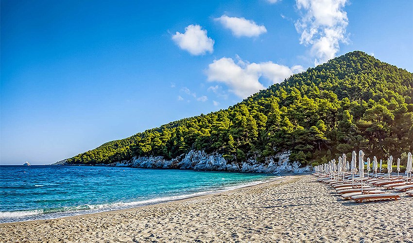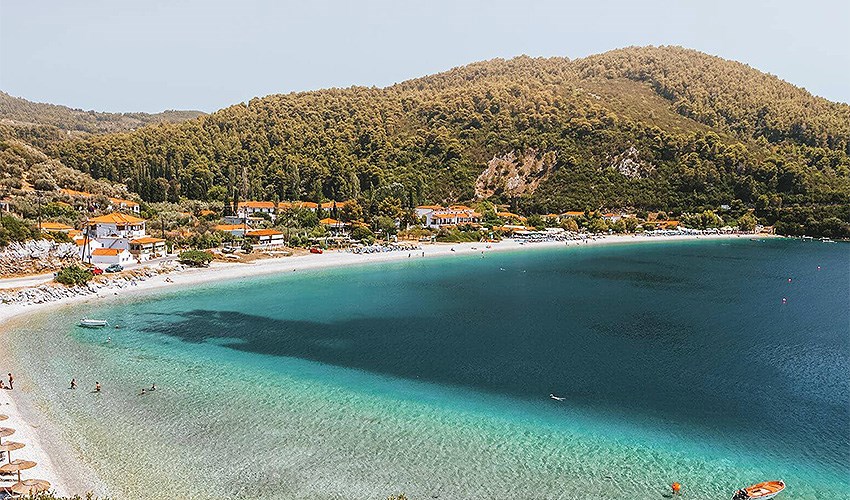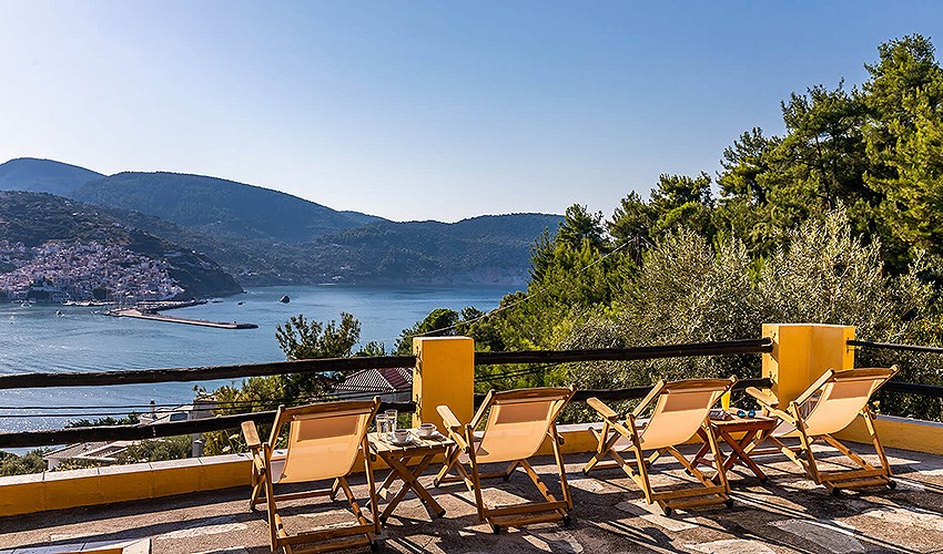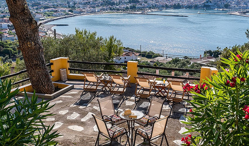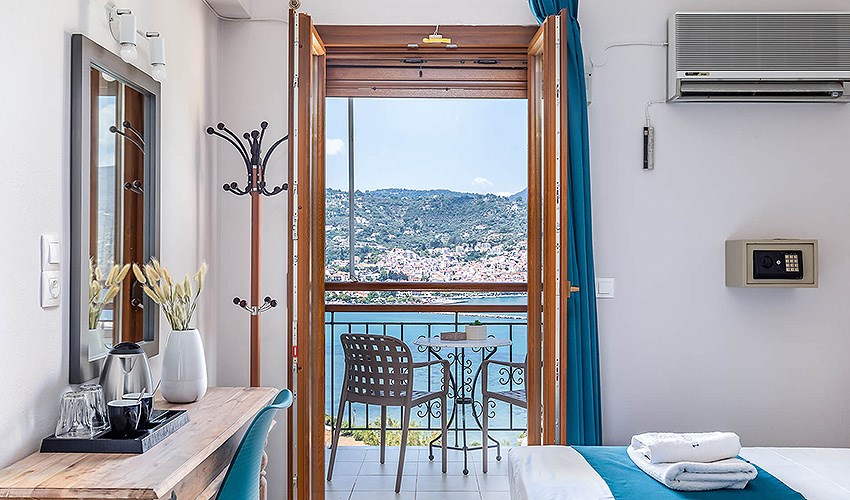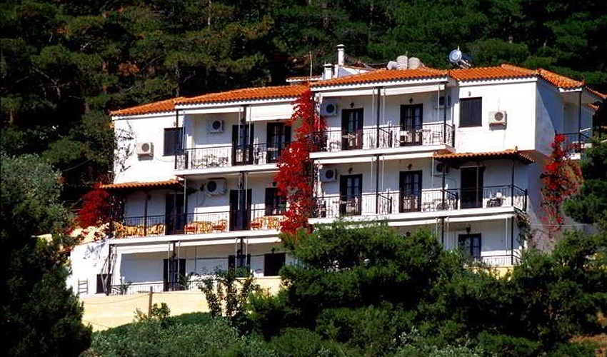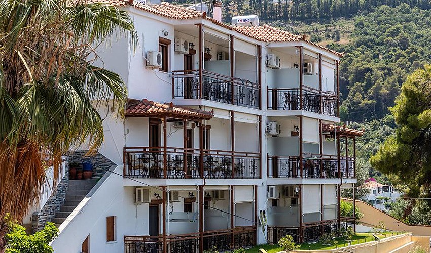 Hotel Aegeon se nachází v klidné části letoviska Skopelos, přibližně 1,8 km od jeho centra s obchody, tavernami a přístavní promenádou. Oblázková pláž je vzdálena asi 600 metrů a nabízí příjemné koupání v křišťálově čistém moři. Díky své poloze na vyvýšeném místě hotel poskytuje krásné panoramatické výhledy na okolní krajinu a pobřeží. Hosté mohou relaxovat u venkovního bazénu se sluneční terasou, kde jsou lehátka a slunečníky zdarma. Součástí služeb je možnost zapůjčení automobilu za poplatek, díky čemuž hosté mohou pohodlně objevovat pláže a přírodní krásy ostrova. Hotel doporučujeme párům, kteří hledají klidné ubytování s pěknými výhledy a dobrou dostupností centra i pláže.