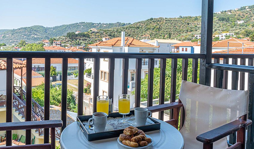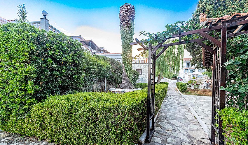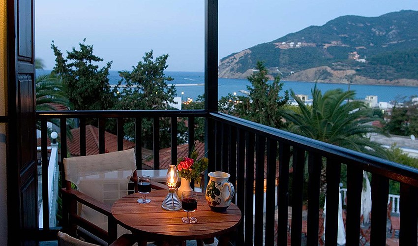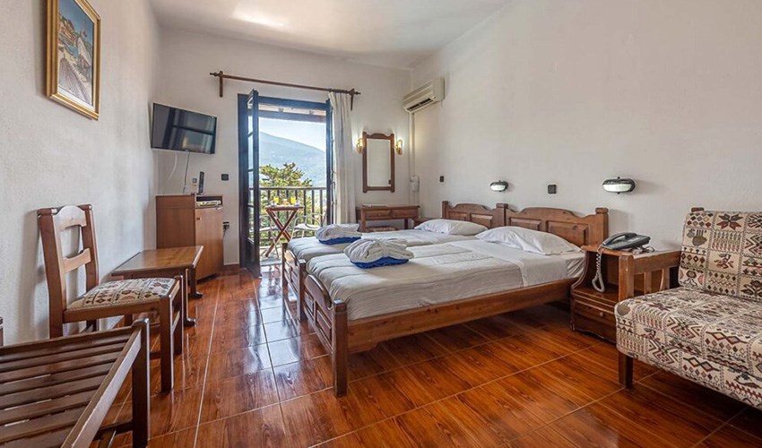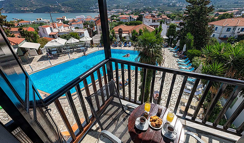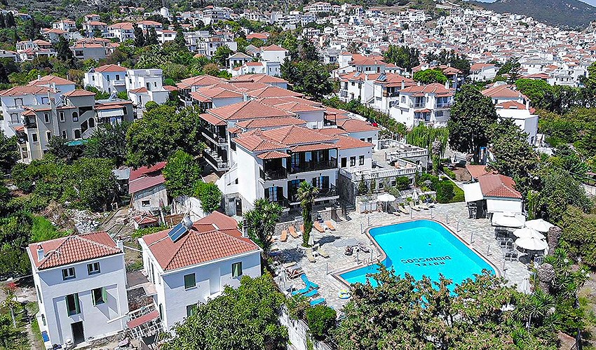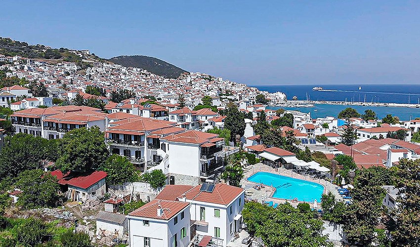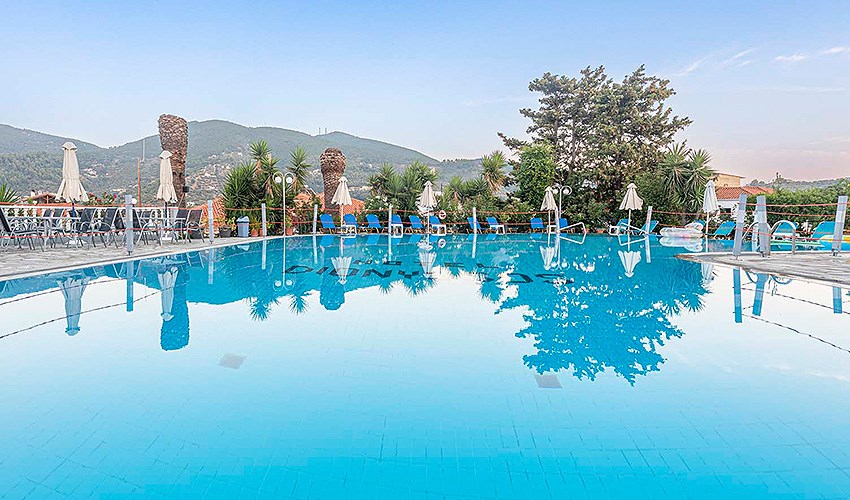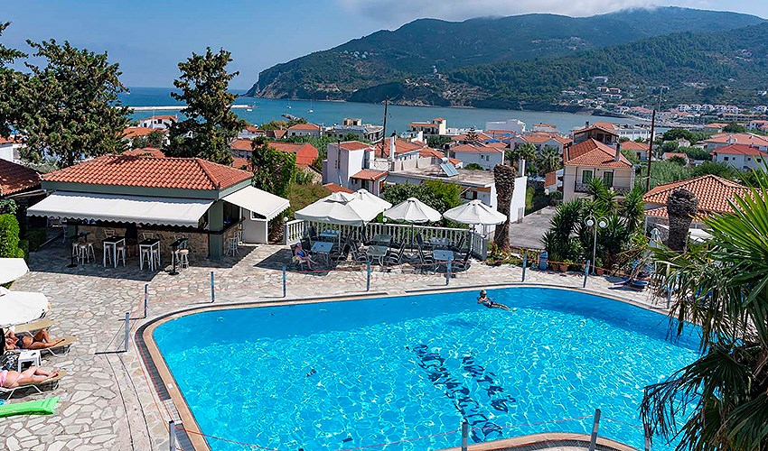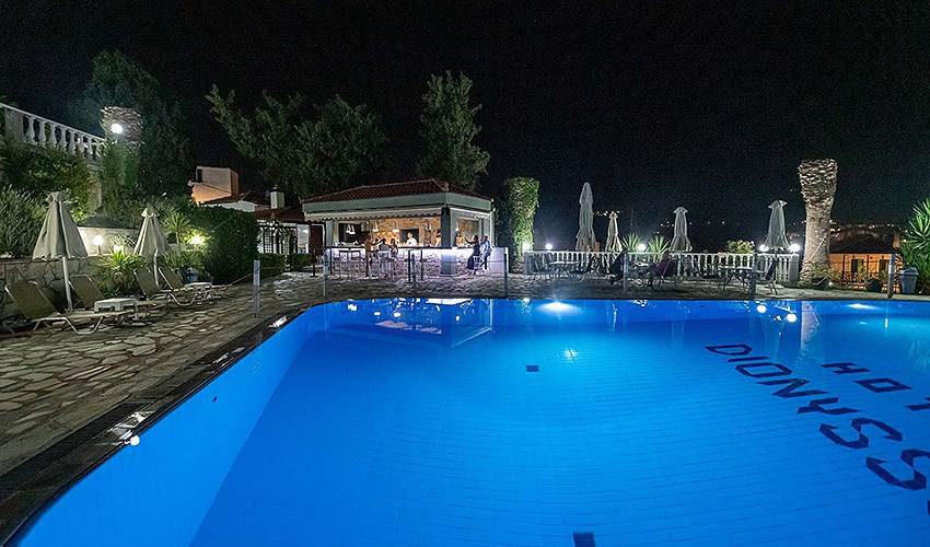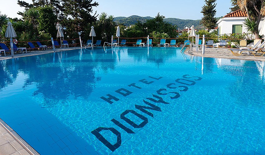 Hotel Dionyssos se nachází v klidné části letoviska Skopelos, přibližně 400 metrů od jeho centra a asi 285 metrů od písečno-oblázkové pláže. Díky své poloze nabízí ideální kombinaci snadné dostupnosti obchodů, taveren a přístavu i příjemného prostředí pro odpočinek. Přístav je vzdálený pouhých 750 m. Hosté mohou relaxovat u venkovního bazénu se sluneční terasou. Součástí hotelu je také bar u bazénu, kde si lze vychutnat občerstvení během dne. Ubytování je zajištěno v komfortních pokojích s balkonem či terasou, vhodných pro jednotlivce i páry. Hotel doporučujeme klientům, kteří hledají příjemné a klidné zázemí v docházkové vzdálenosti od centra letoviska.
