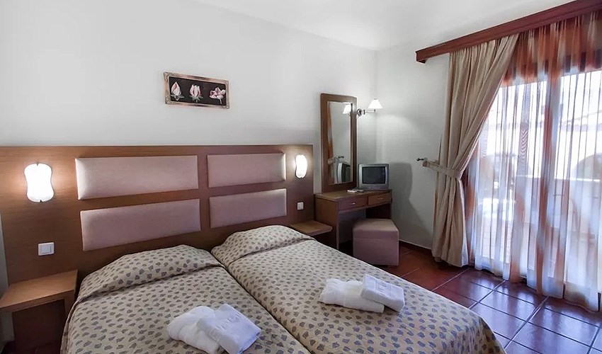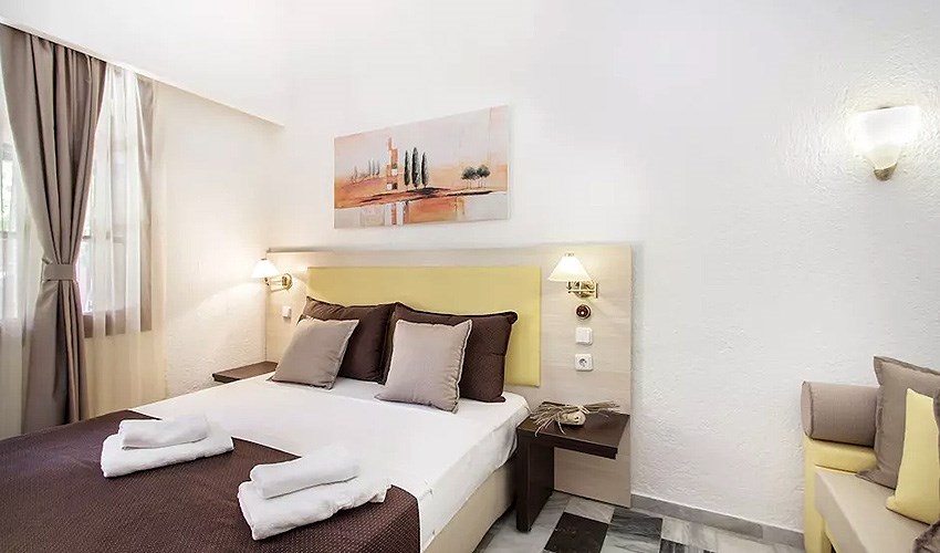 Hotel Rigas Skopelos se nachází v klidné části letoviska Skopelos, přibližně 800 metrů od centra s obchody, tavernami a kavárnami. Oblázková pláž je vzdálena jen cca 350 metrů, takže si hosté mohou užívat koupání i procházky podél pobřeží. Součástí areálu je venkovní bazén se sluneční terasou, která vybízí k odpočinku během horkých letních dnů. Hotel je obklopen zahradou, která dotváří poklidnou atmosféru celého pobytu. Hosté mohou využít také nabídku výletů a aktivit, jako jsou plavby lodí, pěší túry, cyklovýlety nebo potápění za poplatek. Díky své poloze představuje ideální výchozí bod pro poznávání krás ostrova Skopelos. Hotel doporučujeme párům i rodinám s dětmi, které hledají příjemné ubytování v blízkosti centra i pláže v klidném prostředí.