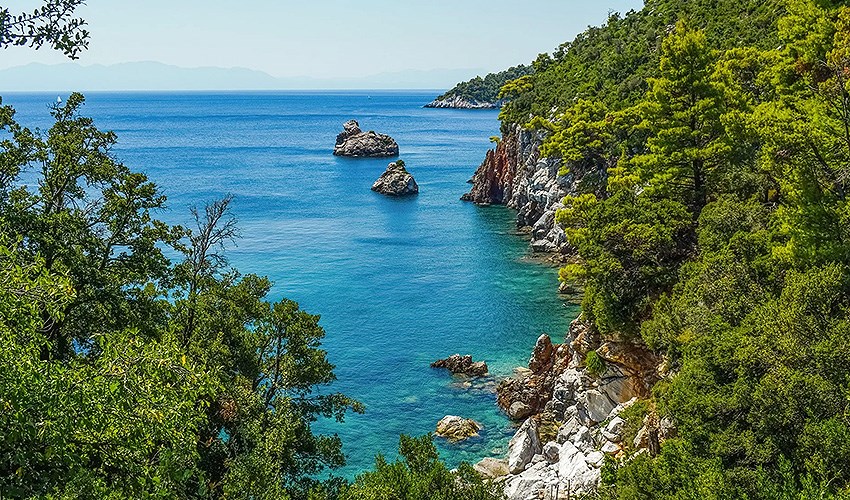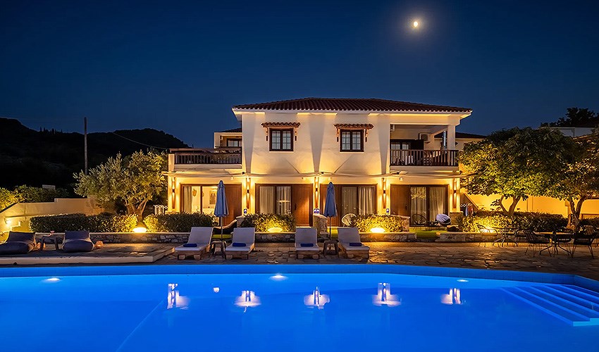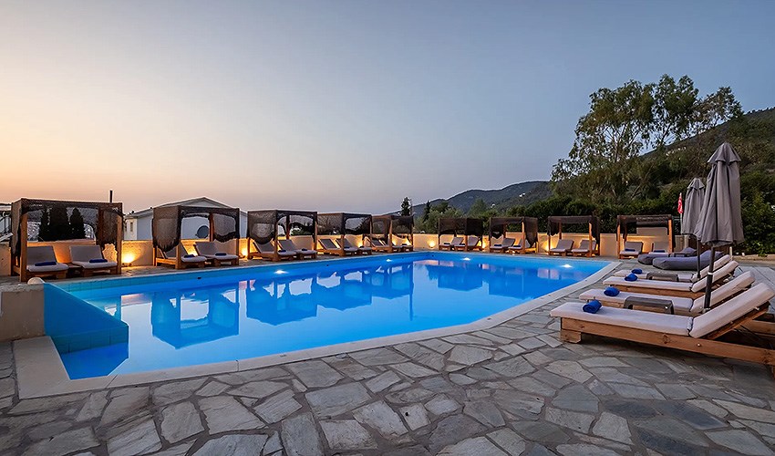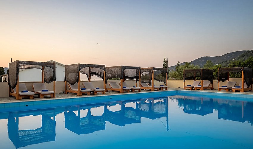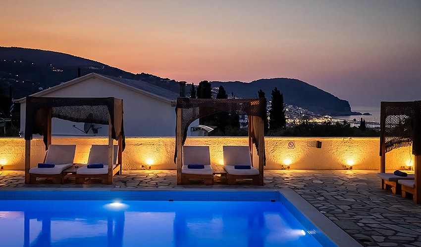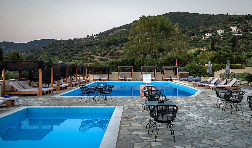 Hotel Skopelos Holidays & Spa leží v klidné části zeleného ostrova Skopelos, přibližně 1,6 km od malebného centra města Skopelos a asi 1,2 km od oblázkové pláže. Poloha nabízí příjemné soukromí a zároveň dobrou dostupnost přístavu, taveren i obchůdků, které dotvářejí typickou atmosféru Sporad. Resort je vystavěn v tradičním ostrovním stylu s důrazem na vzdušnost a pohodlí. Dominantou areálu je rozlehlý venkovní bazén obklopený sluneční terasou s lehátky a slunečníky. Nechybí ani dětský bazén, takže hotel vyhovuje i rodinám s menšími dětmi. Ubytování je zajištěno v moderně a vkusně zařízených pokojích, studiích nebo bungalovech. Samozřejmostí je klimatizace, vlastní koupelna, balkon nebo terasa a Wi-Fi připojení. Interiéry působí světlým a čistým dojmem a poskytují dostatek prostoru pro pohodlný pobyt. Skopelos Holidays Hotel & Spa doporučujeme párům i rodinám, které chtějí kombinovat klidné zázemí, vyšší standard služeb a snadnou dostupnost centra města. Je vhodnou volbou pro ty, kdo hledají komfortní dovolenou v prostředí typickém pro řecké ostrovy, s možností relaxace i objevování krás ostrova.