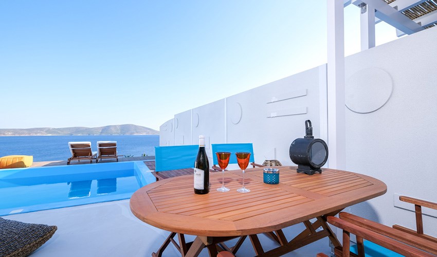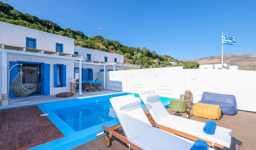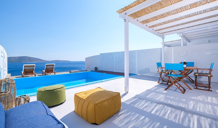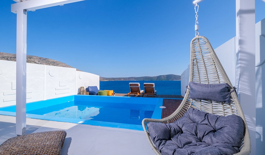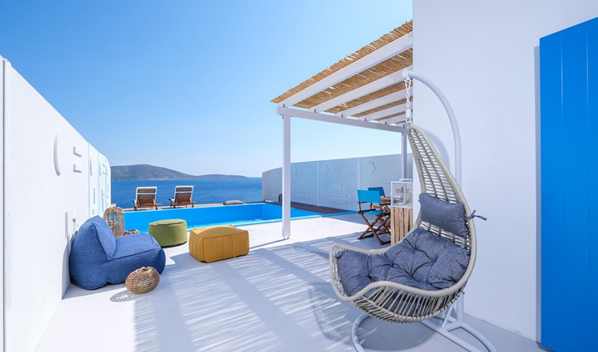Aelia Collection Suites je luxusní ubytování pouze pro dospělé osoby nacházející se na malebném řeckém ostrově Skyros v klidné oblasti Agios Andreas. Tento hotel tvoří 5 plně vybavených autonomních suit domů, které byly navrženy tak, aby nabízely maximální soukromí, klid a komfort během dovolené. Kromě základního vybavení má každý suit vlastní soukromý bazén se slanou vodou s výhledem na Egejské moře, což hostům umožňuje relaxovat přímo u svého ubytování s nádhernými panoramaty. Díky své poloze v zátoce Kalamitsa Bay nabízí Aelia příjemné prostředí s výhledem na azurové hladiny a přírodní scenérie. Aelia se nachází u skalnatého pobřeží a nejbližší pláž je vzdálená cca jeden kilometr. Klíčovým prvkem pobytu je soukromí a pocit exkluzivity, kdy každý dům funguje jako samostatná jednotka – neexistují žádné společné hotelové prostory, což hostům umožňuje větší pohodu a intimitu. Aelia Collection Suites je proto ideální volbou pro páry, které chtějí prožít klidnou romantickou dovolenou, či pro osoby, které chtějí luxusní, klidnou pobytovou zkušenost u moře s výhledem na Egejské moře, soukromým bazénem, a zároveň si užít autentickou atmosféru Skyrosu a jeho přírodních krás.