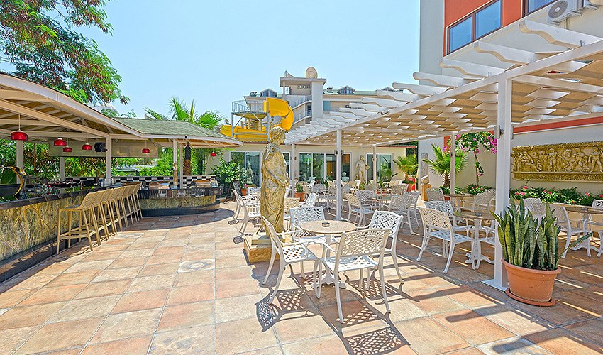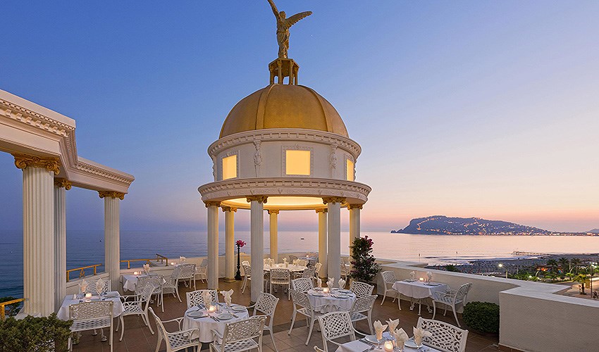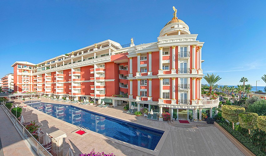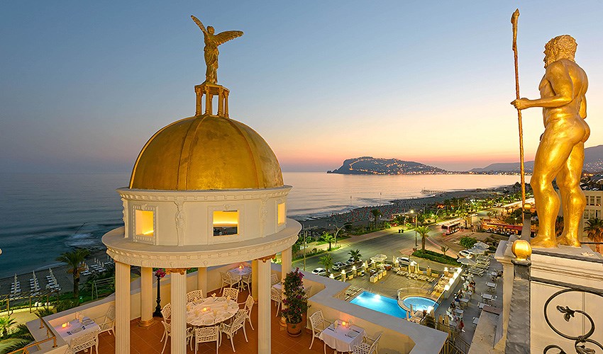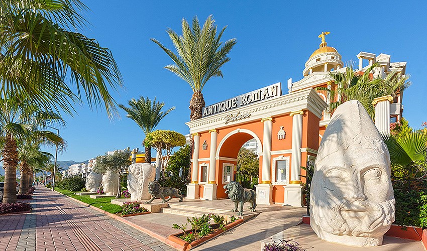 Antique Roman Palace je elegantní pětihvězdičkový hotel situovaný u písečné pláže, která je dostupná přes místní komunikaci. Hotel se nachází v oblíbeném tureckém letovisku Alanya, cca 5 km od centra města s je určen pouze pro hosty starší 16 let. Architektura i interiéry jsou laděny do stylu inspirovaného antickými prvky, což dodává hotelu osobitý charakter. Hosté mohou využívat dva venkovní bazény se sluneční terasou, lehátka a slunečníky jsou k dispozici jak u bazénu, tak na pláži. Součástí hotelu je také wellness zóna s tureckou lázní, saunou a nabídkou masáží (za poplatek), stejně jako fitness centrum. Díky své poloze nabízí kombinaci klidnějšího prostředí u moře a snadné dostupnosti obchodů, restaurací i večerní zábavy. Hotel Antique Roman Palace doporučujeme zejména párům vyhledávajícím poklidnou dovolenou u moře.