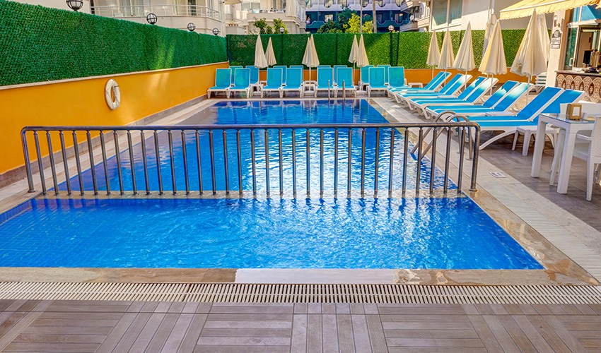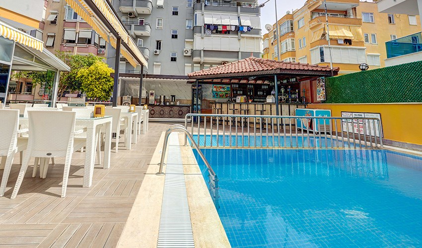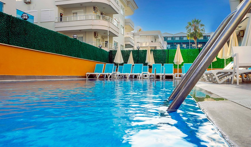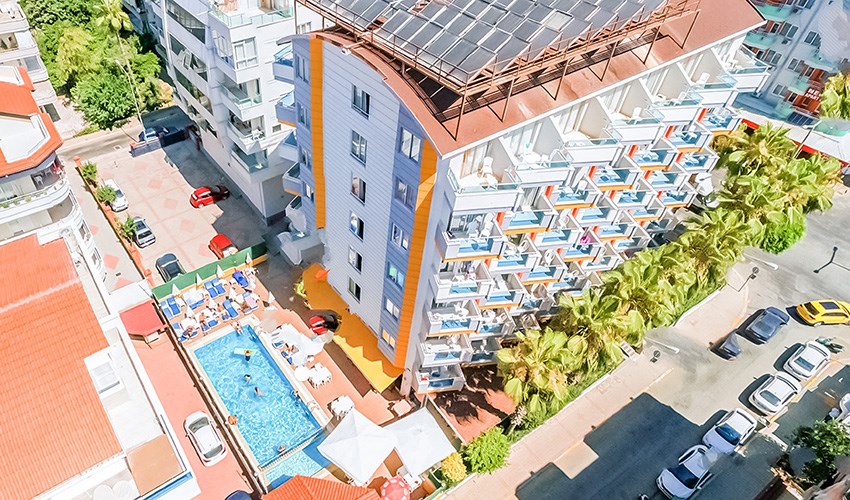 Menší zrenovovaný hotel je situován u známé a velmi oblíbené písečné Kleopatřiny pláže, která je od hotelu vzdálena cca 100 m a je oddělena místní komunikací. Živé centrum Alanye se od hotelu nachází asi 1 km, nákupní možnosti, bary a restaurace naleznete již v jeho nejbližším okolí. Díky své atmosféře je hotel vhodný pro klienty všech věkových kategorií, počínaje samostatnými páry až po rodiny s dětmi.