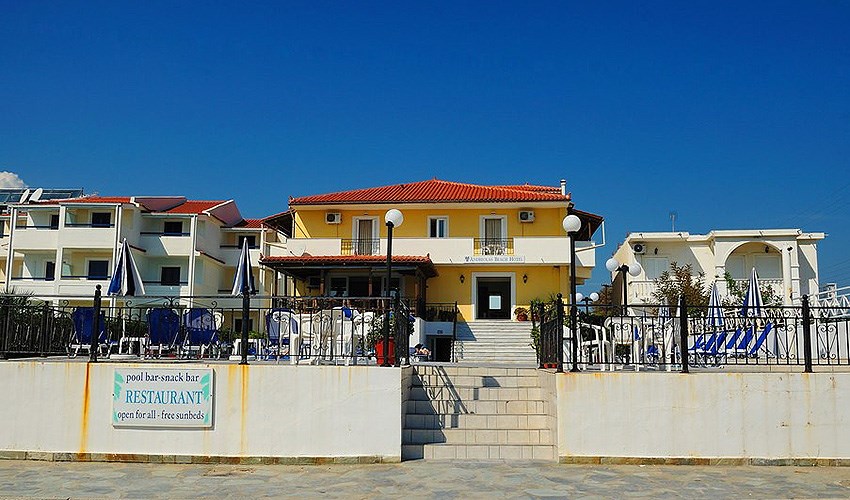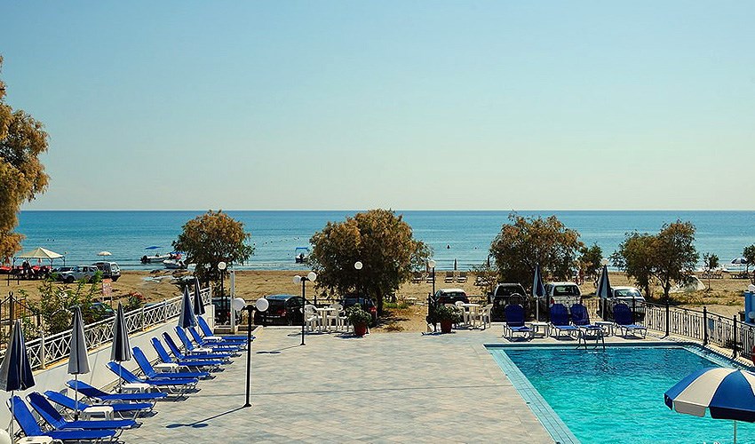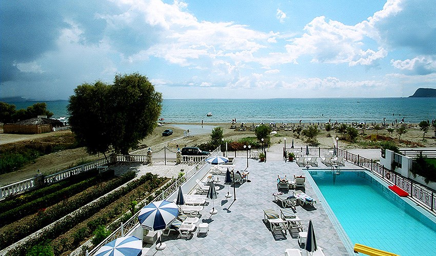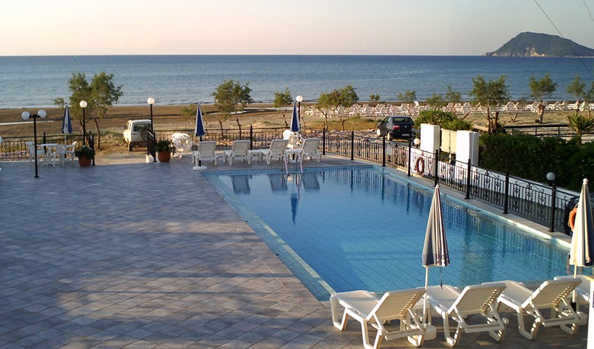 Hotel Andreolas Beach se pyšní exkluzivní polohou v jedné z nejoblíbenějších částí letoviska Laganas. Nachází se bezprostředně u nádherné písečné pláže, která díky svému velmi pozvolnému vstupu do moře představuje bezpečné a ideální prostředí pro rodiny s dětmi i pro páry hledající romantiku u břehu moře. Příjemnou procházkou se od klidného zázemí hotelu dostanete do živého centra letoviska. Hosté mají na dosah ruky pestrou paletu obchodů, tradičních řeckých taveren lákajících na místní speciality, stylových barů a diskoték. K relaxaci je možné využít hotelový bazén, od kterého se naskýtá úchvatný panoramatický výhled na širé moře. Zde si můžete vychutnat osvěžující drink z hotelového baru. Tento hotel je ideální volbou pro klienty, kteří touží po ubytování přímo na pláži, ale zároveň chtějí být v centru dění.